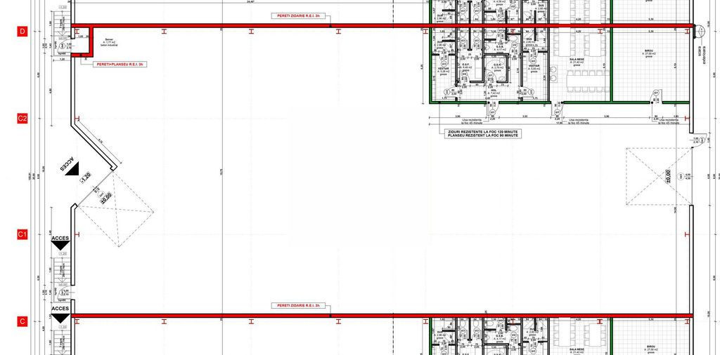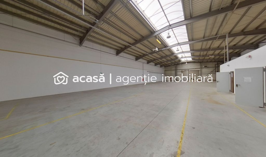 Hală industrială de închiriat în Zona Industrială Sud Arad, lângă intrarea pe Autostrada A1. Hala este pretabilă pentru activităti de depozitare și producție. Suprafață hală: 856 mp Suprafață birouri, sală conferințe, vestiar și grupuri sanitare: 137 mp Înălțime utilă 6.5 m. Distanțe între stâlpii de rezistență: 6 m, respectiv 14 m; Acces TIR: 2 dock-uri de încărcare Porți industriale: 1 buc (4 x 4.5m) PSI: Hidranti interior / exterior Uși antifoc R.E.45-C; Sistem de alarmă; Sistem de detectare a incendiilor; Sistem de evacuare a fumului și gazelor fierbinți; Sistem de iluminat de siguranță Pază și siguranță: Acces securizat, locuri de parcare TIR și autoturisme. Sistem de supraveghere CCTV – pe toata incinta parcului industrial si la portile de acces Sistem supraveghere video cu monitor la cabina poarta Pază umană schimbul III- interval 19:00-07:00 Se asigură locuri de parcare pentru autoturisme și autovehicule de tonaj greu. Service charge: 0,5 EUR / mp + TVA / luna / hala Suma reprezintă cheltuieli comune ale parcului: pază pe timpul nopții, iluminat exterior, toalete ecologice la nevoie, costurile administrative ale asociației de proprietari. Utilități: Apă, gaz, curent și canalizare. Încălzirea halei se face cu suflante pe gaz. Încălzirea birourilor și a vestiarelor se face cu calorifere electrice. Energie verde: Panouri solare care asigură apă caldă menajeră și energia electrică pentru părțile comune. Pentru vizionare vă rog să mă contactați la: 0721356746 Florin Moș