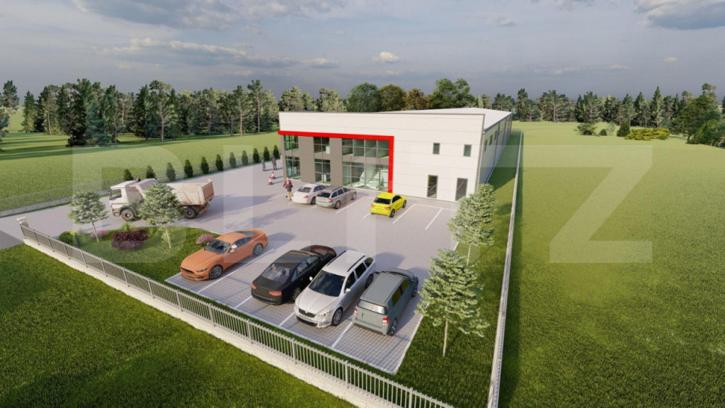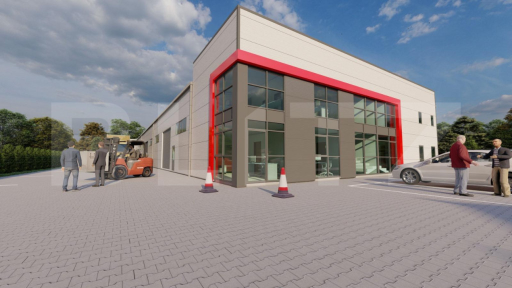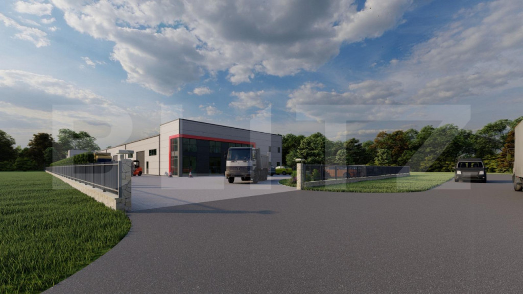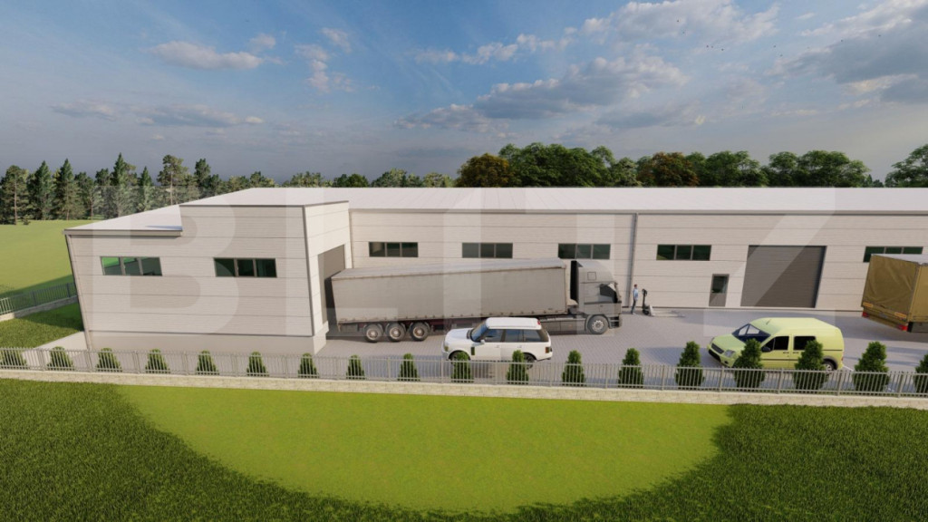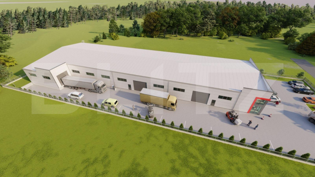 Hală industrială de închiriat – suprafață 1.658 mp, birouri mezanin, rampă andocare, acces TIR Vă oferim spre închiriere o hală nouă, cu predare în acest an, ideală pentru activități de depozitare, logistică sau producție ușoară. Caracteristici principale: • Suprafață utilă hală: 1.458 mp • Birouri amenajate la parter si mezanin- 200 mp • Structură metalică modernă, deschidere liberă de 20 m • Înălțime la coamă: 7,3 m | Înălțime la streașină: 6 m • Rampă de andocare + acces direct pentru TIR în curte • 18 locuri de parcare pentru autoturisme • Teren aferent: 3.345 mp • Dotări: aviz ISU, apă, gaz, curent electric Beneficii: ✔ Construcție nouă, livrare în 2025 ✔ Acces facil pentru transport și logistică ✔ Spații de birouri integrate, optimizate pentru activitate administrativă ✔ Curte generoasă, cu zone de manevră pentru TIR și parcări auto Cod ofertă / ID BLITZ: P153274 Id intern: P153274