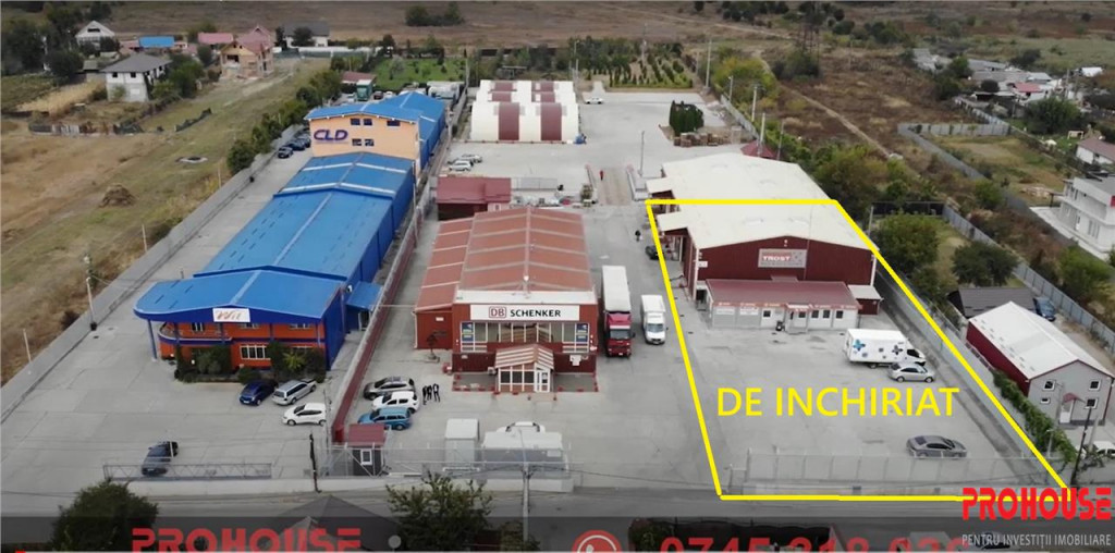 - Bacau, zona industriala Sud-Vest (cartier Izvoare), langa CET; - spatiu industrial de inchiriat in suprafata totala de 570 mp; - hala industriala 474 mp, intrare acces TIR (5m), usa de acces antifoc pietonal, inaltime de 7 m, izolata cu vata bazaltica, peretele despartitor antifoc, incalzire prin panouri radiante, autorizatie ISU, paratrasnet; - poate fi si incalzita, cu panouri radiante; ultimul chirias nu a avut nevoie, astfel ca unele au fost demontate; - container tip birou open space 89 mp, cu incalzire electrica si aer conditionat; - container tip WC 7mp; - hala are alocata o suprafata de platforma betonata de aproximativ 700mp (parcare, depozitare); - spatiul este contorizat separat 220 V 380 V; - toata platforma este ingradita si monitorizata video, cladirile sunt asigurate; - plata lunar garantie 2 luni 1 luna comision Agentie. Pret promotional: prima luna gratis, iar pentru urmatoarele 6 luni chirie de 2500 Euro TVA. Agentia imobiliara PROHOUSE, Marian Duta, tel. 0755 119 120 ID intern: 2230