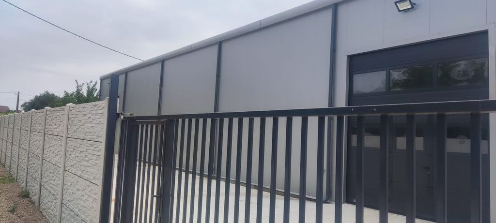 Hala constructie 2023 Bragadiru langa DN6, curte 300 mp betonata, porti industriale electrice ( 2 buc 3,5 * 4 metri ), birou,toaleta,acces TIR, curent trifazic 30 kw, 500 mp curte