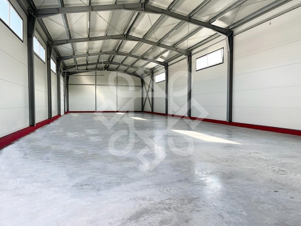 The hall is a new construction, on a metal structure with sandwich panels. It measures a usable area of 600 square meters, with a ridge height of 6 m. It has a helicopter floor, being also suitable for heavy machinery.