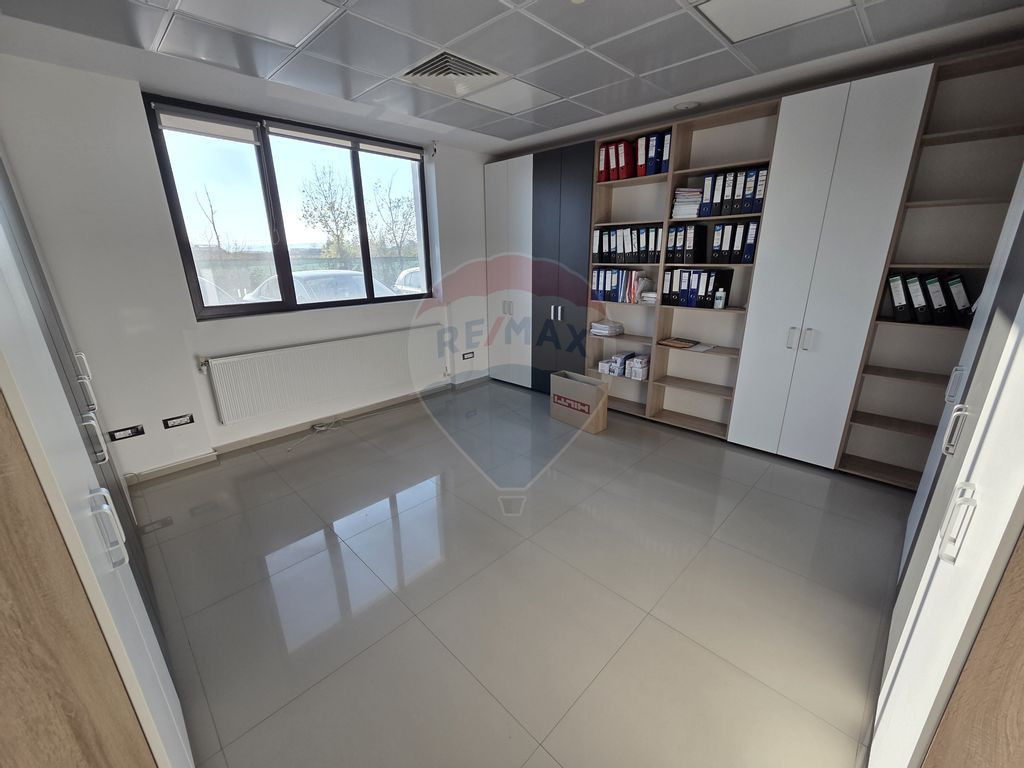 Va propunem la inchiriere spatiu de birouri de aproximpativ 220 mp compartimentat astfel: intrare intr-o camera sptioasa open space, trei birouri, bucatarie, baie si camera tehnica. Hala are 400 mp cu o latime de 10 m si 6-7 m inaltime. Terenul total este de aproximativ 1100 mp. Pentru informatii suplimentare va rugam sa ne contactati.