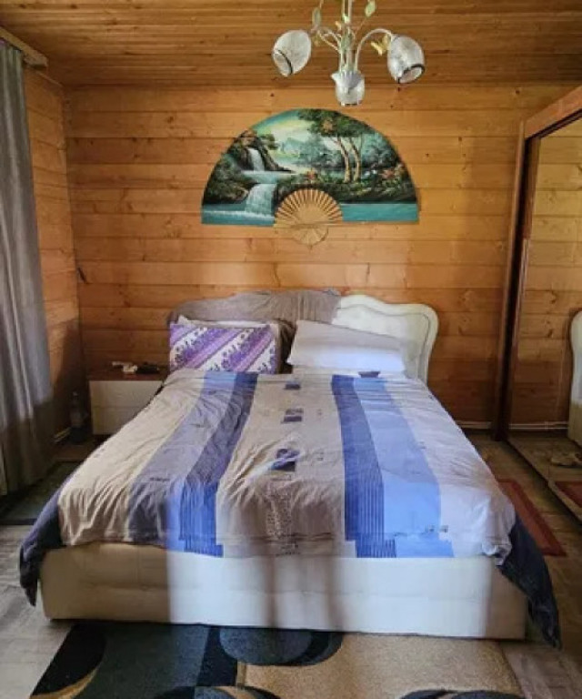 Casa este construita din structura de lemn de 10cm (brad+pin, foarte calduroasa iarna si racoroasa vara) cu o suprafață de 100mp și o terasa acoperita de 27mp, dispune de 2 dormitoare, living cu bucatarie, hol, 1 baie mare cu cada și una cu duș și pod utilizabil.