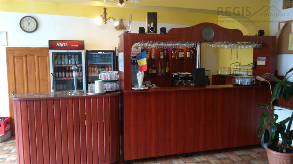 ID intern: 4970 Regis Imobiliare va prezinta o oportunitate unica de investitie ndash; Hotel cu restaurant de vanzare in Brasov! Daca iti doresti o afacere prospera in domeniul ospitalitatii, aceasta pensiune-hotel situata in cartierul Noua, este alegerea ideala. Clasificata 3 stele, finalizata in 2008, proprietatea este intabulata ca hotel cu restaurant si complet functionala. Suprafata teren: 672 mp (290 mp liberi) Suprafata construita: 988 mp, din care 900 mp utili Regim inaltime: Subsol Parter Etaj 1 Etaj 2 Detalii proprietate: Subsol: Crama amenajata ndash; 18 mp (16 locuri) Depozit si magazie ndash; 12 mp Parter: Receptie ndash; 20 mp, intrare separata si rampa de acces pentru persoane cu dizabilitati Living Grup sanitar public, vestiar si baie pentru personal Camera nr.1 ndash; 30 mp, cu hol si baie proprie, special amenajata pentru persoane cu dizabilitati Restaurant complet echipat ndash; 99 locuri, 150 mp terasa la parter de 30 mp Bucatarie anexe ndash; 50 mp, dotata vestiar si baie pentru personal Etaj 1: 5 camere spatioase, fiecare cu hol, baie proprie si balcon mare Terasa generoasa la etaj 1 ndash; 121 mp Etaj 2: 6 camere spatioase, fiecare cu hol, baie proprie si balcon Total camere: 12 camere pentru cazare turistica (6 duble, 6 triple) Mobilier de calitate, minibar, TV, senzori de incendiu Camere de serviciu pentru personal, vestiare, magazie pentru lenjerie Terase: la parter (30 mp), etaj 1 (121 mp), balcoane la etaj 1 si 2 Parcare proprie ndash; 7 locuri in curte 4 locuri in fata hotelului. Incalzire: Centrale in condensatie boiler inox de 2000L pentru apa calda. Acces facil: Drum asfaltat cu 4 benzi. Vedere superba: Muntii Tampa, Postavarul, Piatra Mare, Baza Sportiva, padurea din vecinatate. Constructie solida: Beton armat si zidarie, izolare termica, finisaje moderne ndash; parchet, gresie, faianta, tamplarie termopan Ideal pentru: turism de business, city break, sport si relaxare. Pret de vanzare 1.200.000 euro, usor negociabil. Pentru detalii si vizionari, va stam la dispozitie. Comisionul de intermediere este de 2% Tva din valoarea tranzactiei.