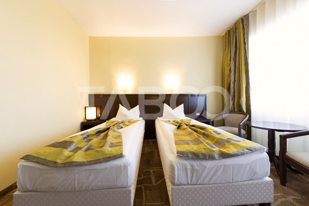 Va oferim spre vanzare hotel de 3 si 4 stele, situat in centrul municipiului Alba Iulia, la 10 minute de Cetatea Alba Carolina. Este compus din 64 de camere si 8 apartamente clasificate in 3 si 4 stele astfel: - 32 camere si 4 apartamente de 3 stele, complet renovate in 2013 si 32 de camere si 4 apartamente clasificate la 4 stele, edificate in anul 2007. - La parter se afla zona de relaxare unde gasim: piscina acoperita, sauna, jacuzzi, cabinet masaj, sala de forta, sala conferinta, receptia, terasa acoperita. Hotelul dispune de 3 restaurante, unul la parter, unul la mezanin si unul la ultimul etaj, precum si de spatii anexe: cladire contabilitate, spalatorie. Total suprafete utile: 6270 mp, total terase acoperite si balcoane 470 mp, total teren 3086 mp. Utilitati: gaz, curent trifazic, apa, canal. Principalul atu al acestei proprietati ramane locatia, acesta beneficiaza de o pozitionare perfecta pentru paleta larga a tipurilor de turism existenta. Comision 0 de la cumparator. Pret: 5.300.000€ Cod ofertă / ID: P17032 Sună-ne acum la 0369.822.820 și află detalii despre această proprietate de vanzare din Alba Iulia, dar și despre alte proprietăți potrivite pentru tine. Informatii speciale: 1. Descarcă aplicația pe mobilul tau "TABOO Imobiliare" din Apple Store, Google Play sau Huawei AppGallery pentru a afla instantaneu noile proprietăți care intră pe piață. 2. Dacă ai o proprietate pe care vrei să o vinzi sau să o închiriezi, suntem aici pentru tine! Contactează-ne pentru o evaluare gratuită fără obligații și vei descoperi avantajele de a lucra cu o echipă dedicată și experimentată. 3. Dacă vrei sa incepi o cariera de agent imobiliar, suna la 0369.822.820 si programeaza o intalnire pentru a afla toate beneficiile si avantajele. Intră pe TABOO.ro și descoperă cele mai recente oferte, actualizate zilnic. Anunt actualizat in 5 decembrie 2025. Id intern: P17032