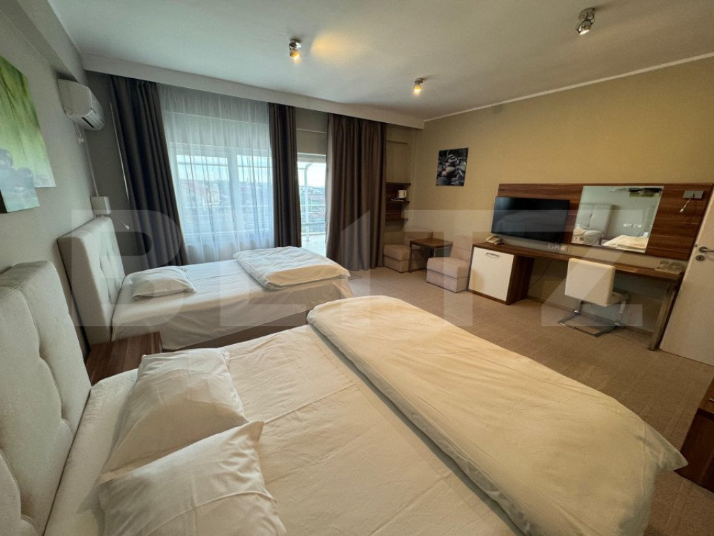 Blitz va propune spre vanzare in Craiova, o constructie eleganta ce poate fi fructificata atat ca si locuinta personala, hotel sau pensiune, de lux in zona Hanul Doctorului. Proprietatea are o suprafață de 1700mp de teren și 1200mp utili. La parter avem partea de receptie, zona de luat masa, un bar, o zona de living si doua terase incantatoare, ce fac trecerea catre piscina locatiei care este amplasata in zona verde. Datorita amenajarii si atentiei la detalii, in zonele de terase si bar se pot organiza evenimente sau petreceri. Compartimentarea pe nivele este una deosebita si diferita pe fiecare etaj. La primul nivel se gasesc doua apartamente decomandate, fiecare cu baie proprie. Unul din apartamente avand si un living spatios. Urcand la cel de-al doilea nivel, gasim patru camere fiecare dispunand de balcon si baie proprie. Un alt aspect important al acestei locatii este balconul pentru fiecare camera. Fiind unul generos, acesta va v-a oferii confortul necesar cat si privelistii deosebite iubitorilor de fotografei sau celor carora le place sa petreaca diminetile sau seriile in aer liber dupa o zi agitata. Intrand putin in detalii, o sa descoperim imbinarea discreta a elementelor moderne ce fac din aceasta locatie sa fie una eleganta si confortabila. Materialele folosite atat la constructie, cat si amenajare au fost unele premium. Curtea este pavata ceea ce ofera un plus de confort si accesibilitate usoara pentru masini. Din punct de vedere al amplasarii, se afla intr-o zona linistita, cu vedere asupra orasului. In apropriere avem Aeroportul international al Craiovei, Parcul Hanul Doctorului, viitorul Dracula Parc, scoala de fotbal Gica Popescu, mijloace de transport cat si multe altele. Aceasta oportunitate se poate transforma intr-un succes. Cod ofertă / ID BLITZ: P137735 Id intern: P137735