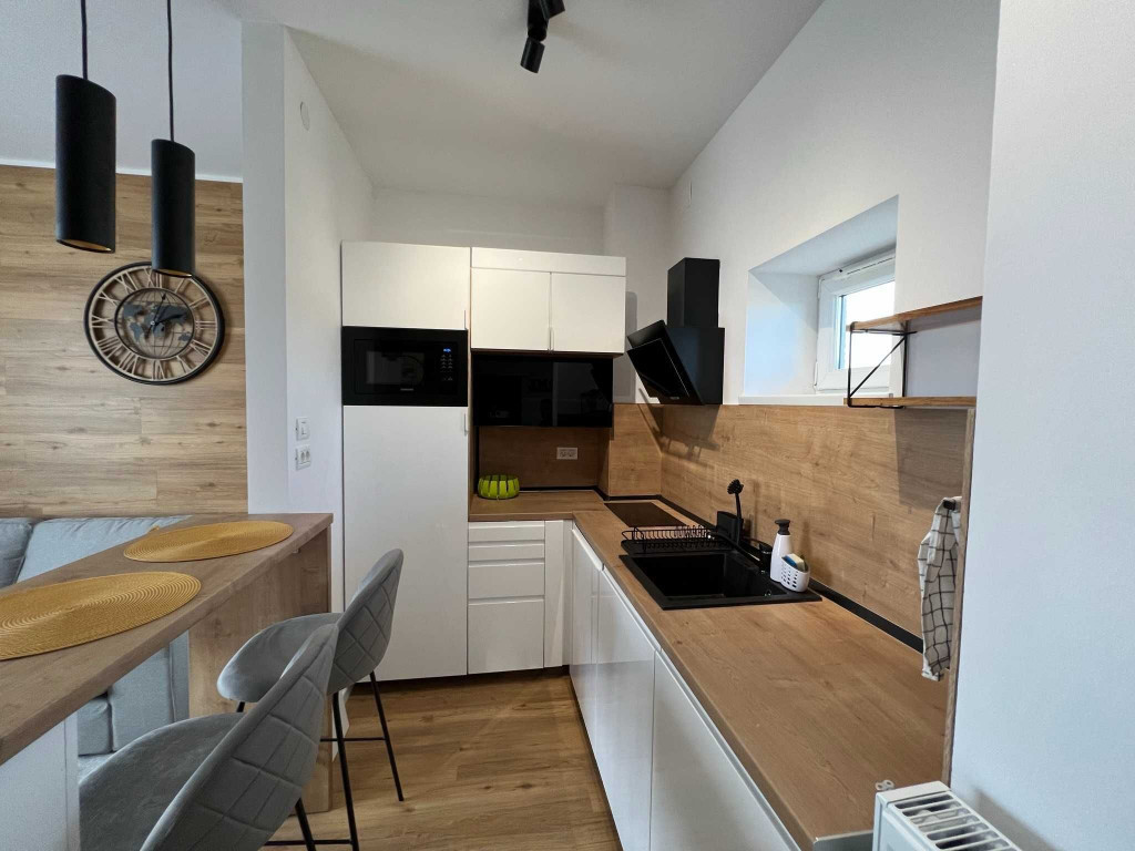 Apartament tip studio, Vatra Luminoasa (Iancului-Piata Muncii), renovat, modern + terasa Apartament tip studio (1 camera), pe Vatra Luminoasa, intre Iancului si Piata Muncii, renovat, modern + terasa, bloc izolat termic. Garsoniera complet mobilata situata la etajul 9 (priveliste Casa Poporului / Mega Mall), este contorizata separat (apa, curent electric, internet, cablu TV). Accesul se face separat din terasa special amenajata in suprafata de aproximativ 20mp. Mobilier Ikea, electronice si electrocasnice noi, dotat cu pat 160x200, TV smart Samsung, aer conditionat, masina spalat rufe, plita si cuptor electric, combina frigorifica, bar pentru luat masa, canapea, dulapuri haine, baie complet utilata (lavoar, vas WC suspendat, dus tip walk-in). Pret 450 euro (2250 lei) / luna