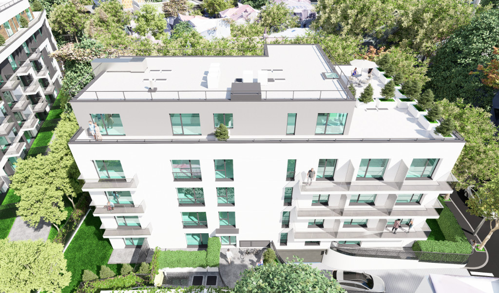 • Ansamblul beneficiază de un consum electric provenit parțial din panouri fotovoltaice montate pe terasa blocului, contribuind la reducerea costurilor și a amprentei de carbon;
