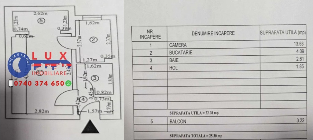 NOU PE PIAȚĂ! Garsonieră confort 1, renovată, pregătită pentru mutare imediată! Cartier Dallas, etaj 1 Suprafață: 25,3 mp Compartimentare originală: hol, cameră, balcon, bucătărie, baie MODIFICARE PRACTICĂ: bucătăria mutată pe balcon, iar în spațiul fostei bucătării s-a amenajat un mic dormitor – ideal pentru un plus de confort! Dotată cu: aer condiționat, boiler Se vinde mobilată și utilată – tot ce vezi, rămâne! Preț: 39.500 EURO Ideală pentru locuit sau pentru investiție (închiriere rapidă)! Contact: Marin Nicolae – 0740 374 650 Alina – 0744 814 740 Ioana – 0756 557 146 [email protected] www.agentialuximobiliare.ro Vino să ne vizitezi la sediul LUX Imobiliare: Strada Babadag, Nr. 12, Bl. 6, Parter (vis-a-vis de CEC Bank) Ne găsești și pe: Facebook, TikTok, Instagram, YouTube – căută Agentia Lux / Lux Imobiliare!