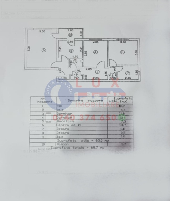 Vă doriți o locuinta in care sa va mutati imediat si care să asigure un mediu ideal pentru toată familia? Agentia LUX Imobiliare vă propune spre vânzare apartament cu 3 camere LA CHEIE, situat în Cartier E3, pe Strada Meduzei, aproape de mijloacele de transport în comun, Hypermarket Kaufland, magazine, scoala, etc. Locuinta este amplasata la etajul 4 (cu pod) si este decomandata. Apartamentul are suprafata de 68.7 mp și este compus din: hol prevazut cu dressing generos si spatiu de depozitare, living modern si amenajat cu gust, 2 dormitoare, bucătărie extinsa in balcon, echipata cu electrocasnice de calitate si 2 grupuri sanitare. +++ BOXA Centrala termică pe gaz si 2 aparate de aer conditionat va asigura confortul termic în orice sezon. Se vinde MOBILAT si UTILAT! PRET 120.000 EURO Descopera noua perspectiva a confortului intr-un apartament LA CHEIE. Pentru toate detaliile de care aveți nevoie, sunați-ne acum: 0740 374 650 Marin Nicolae 0744 814 740 Alina 0756 557 146 Ioana E-mail: [email protected] www.agentialuximobiliare.ro Facebook: Agentia Lux / Lux Imobiliare Sediul Agentiei Lux Imobiliare: Strada Babadag, Nr 12, Bl 6, PARTER (vis-a-vis de CEC Bank)