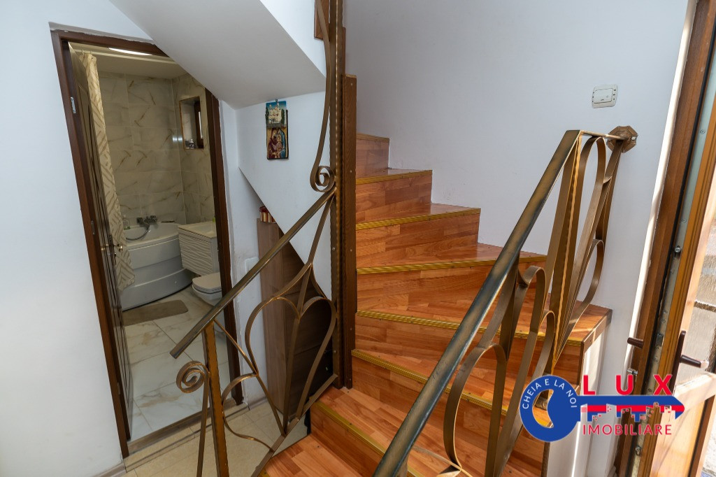 AGENTIA LUX IMOBILIARE va propune spre vanzare in o casa amplasata in Zona Podgoriilor, intr-o zona linistita si cu vecini prietenosi si aproape de LIDL, Parcul Victoria, Scoala Generala Alexandru Ciucurencu, Scoala Gimnaziala Nr. 12, Liceul Tehnologic Ion Mincu, Liceul Teoretic Grigore Moisil, magazine, restaurante, farmacii, Penny, etc Proprietatea este formata din teren cu suprafata de 108 mp si 2 corpuri de casa. Frontul stradal este de 10 ml. - Corpul 1 are regim de inaltime P+E si are suprafata desfasurata de 86 mp. Este construit din BCA (2009) si acoperit cu tabla si este compartimentat astfel: PARTER: living, bucatarie si baie ETAJUL: hol, 2 dormitoare cu acces catre balcon si baie. - Corpul 2 are suprafata de 16 mp si este compus din bucatarie, camera si baie. Incalzirea se face prin calorifere cu centrala termica pe gaz. + MAGAZIE + Curte betonata unde este amenajata o mica terasa acoperita PRET 140.000 EURO Haideti sa stabilim o vizionare: 0740 374 650 Marin Nicolae 0744 814 740 Alina 0756 557 146 Ioana E-mail: [email protected] www.agentialuximobiliare.ro Facebook: Agentia Lux / Lux Imobiliare Sediul Agentiei Lux Imobiliare: Strada Babadag, Nr 12, Bl 6, PARTER (vis-a-vis de CEC Bank) Ne puteti gasi pe INSTAGRAM si pe TIK TOK