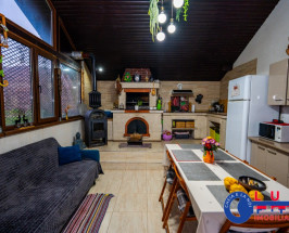 - TERASĂ ÎNCHISĂ cu tâmplărie PVC și geamuri termopan dotată cu barbeque din marmură, cuptor pe lemne, plită pe lemne, aragaz, chiuvetă, mașină de spălat vase, mobilier complet, canapea, TV, aer condiționat, frigider, sobă tradițională.