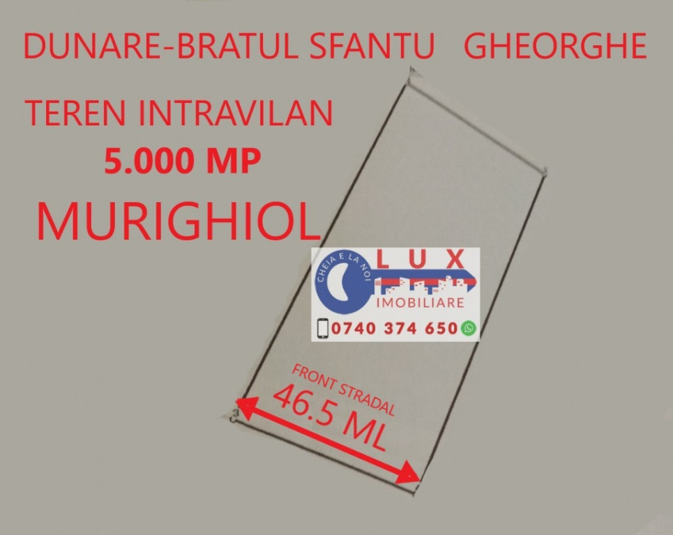 Agentia Lux Imobiliare va propune spre vanzare TEREN INTRAVILAN amplasat in Comuna Murighiol, avand o suprafata totala de 5.000 mp.