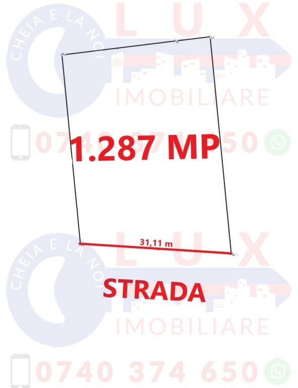Agentia Lux Imobiliare vă propune spre vânzare lot teren amplasat in Zona Baltag! - Suprafata terenului: 1.287 mp - Deschiderea la strada este de 31,11 ml - Utilități în apropiere - apă curentă și energie electrică Proprietatea este excelentă pentru a locui cu familia într-o zonă foarte liniștită, departe de vuietul orașului! Sunteți, așadar atât de aproape de proiectul casei la care vă gândiți de ceva vreme! Pret: 85.000 EURO Detalii suplimentare la numerele de telefon: 0740 374 650 Marin Nicolae 0744 814 740 Alina 0756 557 146 Ioana E-mail: [email protected] www.agentialuximobiliare.ro Facebook: Agentia Lux / Lux Imobiliare Sediul Agentiei Lux Imobiliare: Strada Babadag, Nr 12, Bl 6, PARTER (vis-a-vis de CEC Bank)