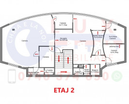 - ETAJUL 2 are suprafata de 120 mp si este compartimentat astfel: hol de acces, 7 camere, spatiu de depozitare si 2 grupuri sanitare.
