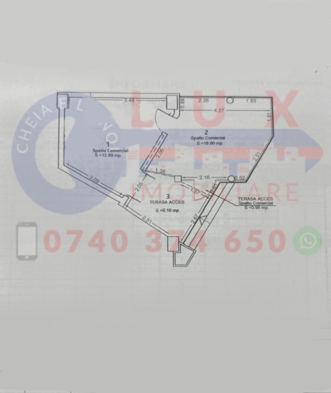 LUX Imobiliare vă oferă spre închiriere un spațiu comercial, cu o suprafață de 36,67 mp, ideal pentru birouri, cabinet, magazin sau alte activități comerciale. Detalii spațiu: 2 camere + terasă de acces Spațiu de expunere - vitrină 10 ml 2 intrări separate Dotări: aer condiționat Utilități: apă, curent, canalizare Preț: 400 €/lună Contactează-ne pentru mai multe informații și programări vizionare: 0740 374 650 – Marin Nicolae 0756 557 146 – Ioana 0744 814 740 – Alina [email protected] www.agentialuximobiliare.ro Sediul LUX IMOBILIARE: Str. Babadag, Nr. 12, Bl. 6, Parter (vis-a-vis de CEC Bank) Ne găsești și pe Instagram, YouTube & TikTok