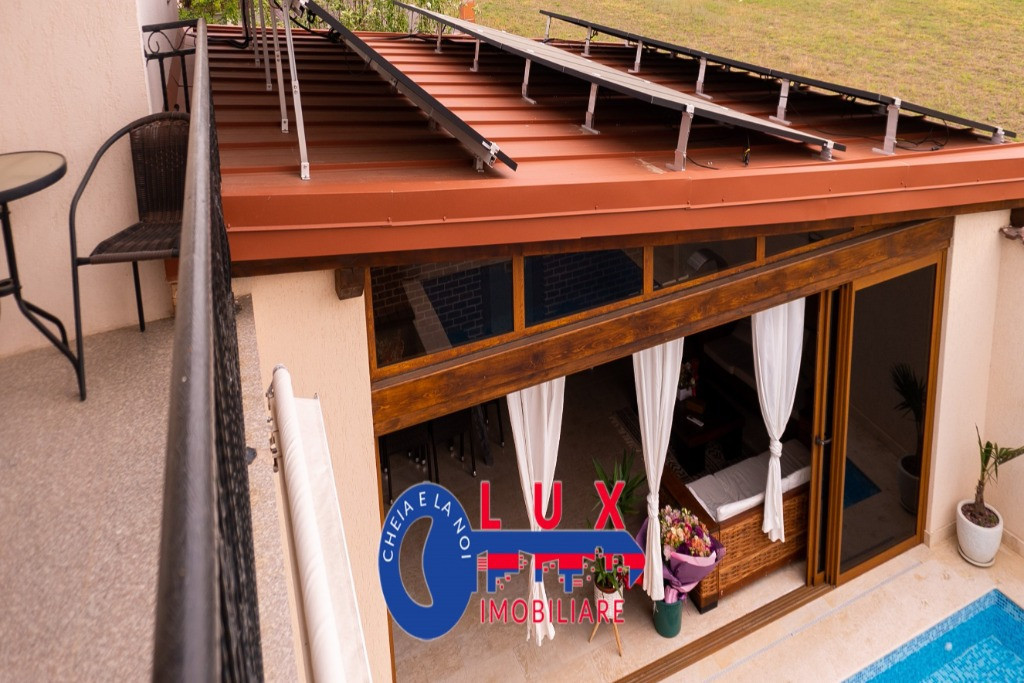 PARTER: bucătărie open space cu insulă, complet utilată și mobilată, dining, living generos, dormitor, baie, cameră tehnică și o terasă exterioară acoperită, închisă cu geam termopan, dotată cu baie și aer condiționat.