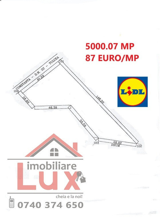 Agentia Lux Imobiliare va propune spre vanzare in EXCLUSIVITATE TEREN INTRAVILAN amplasat pe DN 22 avand o suprafata totala de 5000.07 mp.