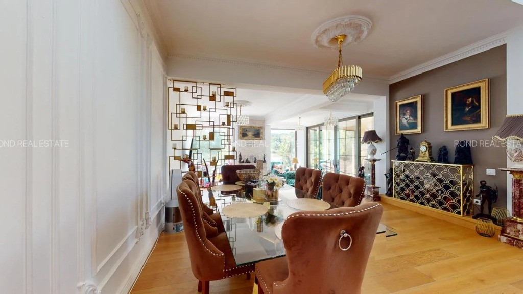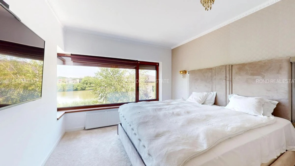 UN DOMENIU PRIVAT PE MALUL LACULUI - O PROPRIETATE PE CARE TREBUIE SĂ O VEZI CA SĂ O ÎNȚELEGI În inima comunei Corbeanca se află o proprietate care nu este doar o casă – este un refugiu privat, un loc unde apa, lumina și natura creează un stil de viață imposibil de replicat. Descoperiți o proprietate spectaculoasă, rar disponibilă pe piață: o reședință elegantă cu deschidere directă la lac, poziționată pe un teren generos de 1.494 mp, într-un cadru natural absolut superb. Bucură-te de liniștea apei, de frumusețea naturii și de confortul unei case construite cu atenție la detalii. Această proprietate unică, situată într-una dintre cele mai căutate zone din Corbeanca, oferă o combinație perfectă între arhitectură elegantă, spații ample și o deschidere superbă către lac. Proprietatea se vinde complet utilata si mobilata. Totul începe cu grădina – o combinație rară de spații largi, vegetație matură, arbori ornamentali și alei naturale. Imaginează-ți: pași pe piatră albă, lumina caldă filtrată printre ramuri, liniștea unei proprietăți unde singurele sunete sunt cele ale naturii. Grădina este impecabil întreținută și se remarcă prin: • arbori decorativi și umbroși • arbuști ornamentali, gazon dens • poteci din piatră naturală • un mix ideal între zone umbrite și spații însorite • intimitate totală pe laturile laterale ale proprietății Zona de pe malul lacului este un adevărat punct de atracție: • deck din lemn, perfect pentru șezlonguri și seri liniștite • ponton privat pentru activități pe apă • zonă lounge pentru seri al fresco • priveliști neîntrerupte asupra luciului de apă Este locul unde diminețile devin ritualuri, iar apusurile par desprinse dintr-un film. Case ca aceasta apar rar pe piață. Iar cele cu deschidere reală la lac, teren mare, grădină matură și arhitectură premium – aproape niciodată. Dacă îți dorești un stil de viață cu adevărat special, aceasta este proprietatea care îți poate schimba perspectiva. In cazul acestei case un este vorba despre suprafață, este genul de casă care îți rămâne în minte de la prima secundă. INTERIOR LUMINOS, ELEGANT & IMPUNĂTOR Pășind în living, îți dai seama că ai intrat într-o casă cu adevărat specială. Ferestrele uriașe aduc lacul în interior, iar lumina naturală inundă fiecare metru pătrat. Spatiu spectaculos, cu suprafețe vitrate mari, șemineu central și acces direct către terasă, oferă o atmosferă luminoasă și sofisticată. Materialele premium, spațiul amplu și designul coerent creează o senzație de rafinament și confort autentic. Livingul este dominat de: • o canapea Chesterfield spectaculoasă, în nuanță de smarald • șemineu masiv, placat în piatră naturală • tavane înalte, profilate elegant • candelabre din cristal ce dau un aer de rezidență aristocratică • vedere panoramică asupra verandei și a apei Este un spațiu care impresionează prin dimensiuni, atmosferă și rafinament. Alături se află zona de dining – generoasă, luminoasă, perfectă pentru seri cu prietenii, dar și pentru cine intime. Bucătăria deschisă, dar separată este spațioasă, bine organizată și complet funcțională. Această casă nu este despre “câte camere are”. Este despre ce îți oferă în fiecare zi: ✔ cafeaua pe ponton ✔ apusuri incendiare peste lac ✔ seri pe terasă cu briza apei ✔ intimitate totală datorită vegetației dense ✔ siguranță și liniște într-o zonă premium ✔ libertatea unei proprietăți mari, bine gândite ✔ senzația permanentă că ești în vacanță COMPARTIMENTARE PERFECTĂ PENTRU CONFORT & LIFESTYLE Parter Spațiile sunt ample și gândite pentru a maximiza confortul: • living panoramic • dining luminos • două dormitoare spațioase • dressing generos • două băi moderne • cameră tehnică • holuri largi • terasă acoperită spectaculoasă – un living exterior perfect pentru orice anotimp Etaj Etajul oferă un spațiu intim, ideal pentru master suite,: • dormitor • dressing • baie proprie • zonă de relaxare REFUGIU DE LUX PENTRU CEI CARE ȘTIU SĂ APRECIEZE CALITATEA Proprietatea este ideală pentru: • familie • cupluri care caută liniște și spațiu • iubitori ai naturii și ai apei • persoane care doresc o casă de vacanță la doar câteva minute de București • investitori care caută un asset premium, sigur și extrem de rar