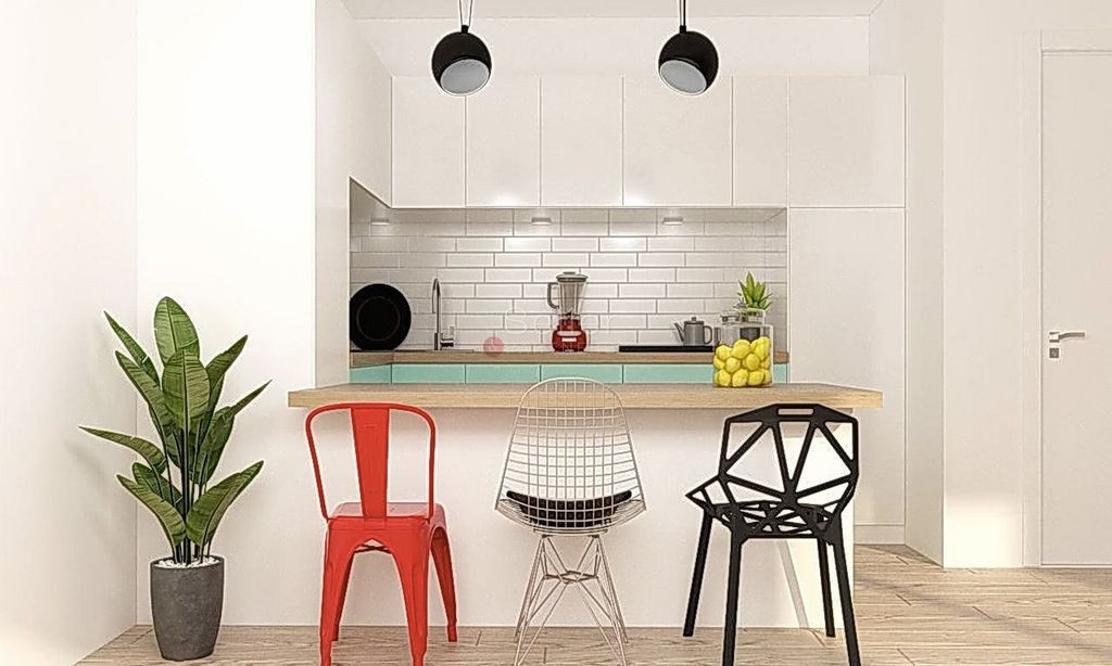 - bucataria, aceasta fiind de tip open space impreuna cu zona de luat masa si zona de dormit, cu deschidere la propria terasa;
