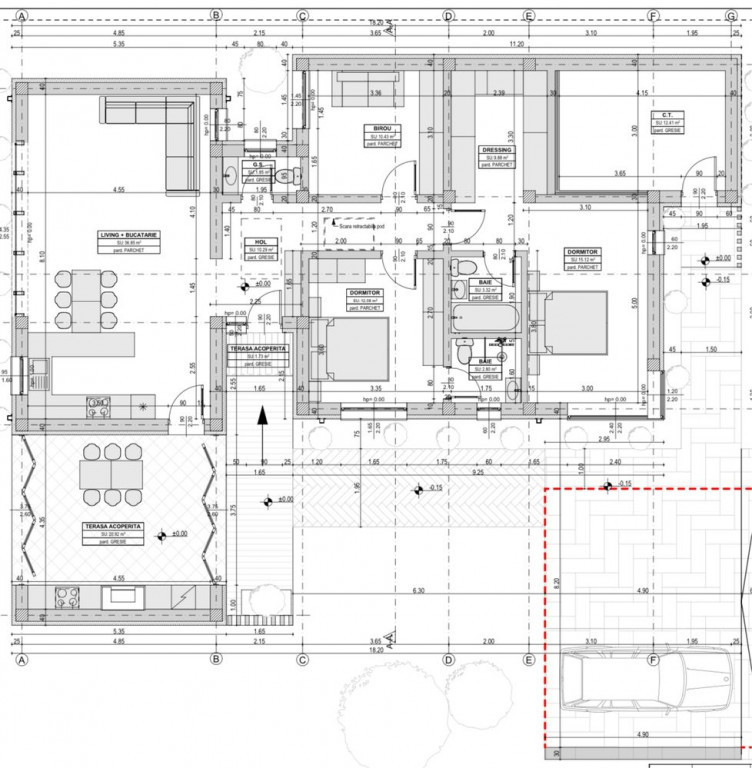 Zona de zi este formata dintr-un living luminos cu bucatarie open space, cu acces direct catre o terasa acoperita unde te poti relaxa in liniste sau petrece timp alaturi de familie si prieteni.