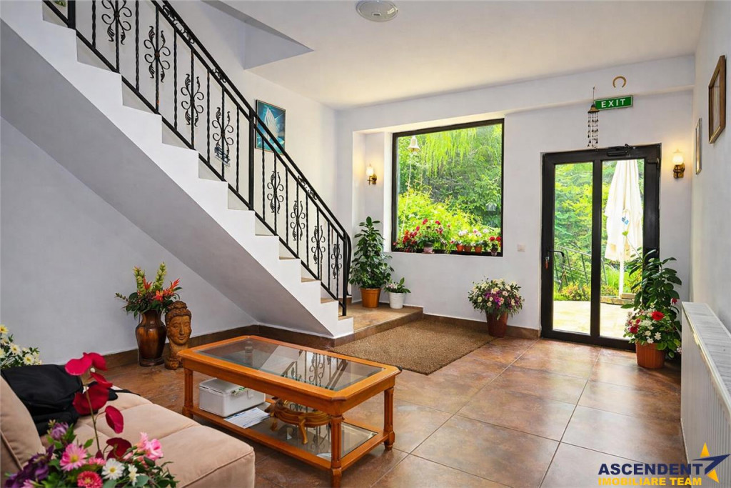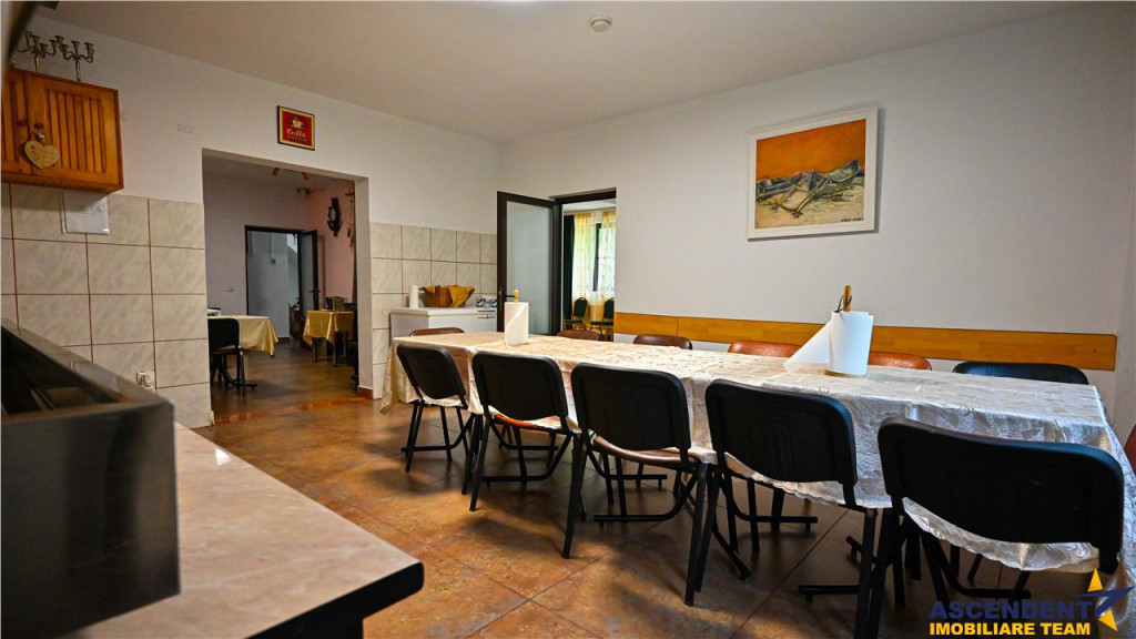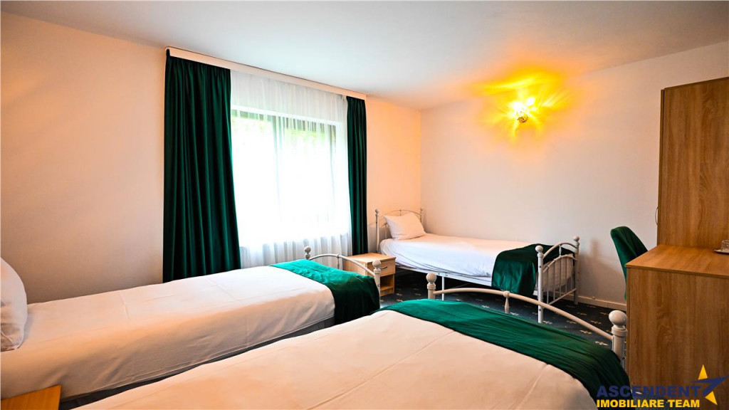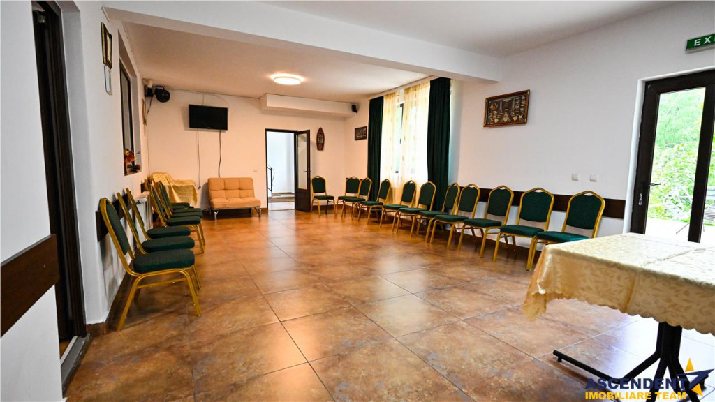 Comision 0% la cumparator ASCENDENT IMOBILIARE BRASOV, ofera spre vanzare un complex turistic cu traditie, aflat in circuit din 2007, situat in Rezervatia naturala Piatra Craiului, mai exact pe superbul drum spre Plaiu Foii. Cu vedere panoramica la creasta Pietrii Craiului, intr-un peisaj natural de exceptie, complexul este destinatia ideala petru turism montan, dar si pentru concedii de relaxare sau team buiding. Renovat integral in 2023 complexul are eficienta energetica de ultima generatie: Prosumator cu panouri fotovoltaice de 15 KW invertor 5 panouri solare pentru apa calda pompa de caldura Generator de backup pentru siguranta In mijlocul unui teren amenajat de 7700 mp, structura complexului se prezinta astfel- Vila pensiune Parter - sala de curs, salon, sala de mese, bucatarie, 2 bai - centrala noua Etaj 1 - 5 camere cu bai proprii si 3 balcoane Etaj 2 - 3 camere 1 apartament, toate cu baie proprie Vila 2 - incalzire cu pompa de caldura si cenrala pe lemne Living, bucatarie, 2 bai, 3 dormitoare Vila 3 4 camere, 2 bai, garaj de 100 mp, spati depozitare Ca utilitati mentionam- 3 surse de curent = a)de la reteaua nationala, b) sistem fotovoltaic 15 kw c)generator diesel 10KVA 2 surse de apa de la 3 fantani si un izvor- capacitate de stocare 3 tone 2 surse apa calda - instalatie solara cu tuburi vidate si centrale pe lemne Dotari - sistem supraveghere,internet, cablu TV, detectoare incendiu. Suplimentar mai sunt avem o magazie de combustibili si depozitare materiale. Fiind un complex cunoscut si integrat in circuitul turistic, investitia se poate prelua ca o afacere la cheie. Consilier specializat pe aleasa oferta: doamna Lucia Demco Telefon/ WhatsAp: 0720689222 Detalii, fotografii suplimentare si alte oferte similare exclusive: www.ascendentimobiliare.ro