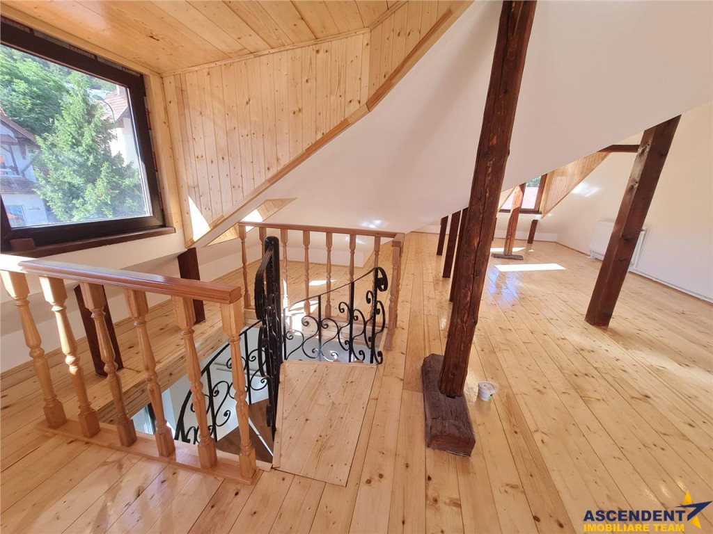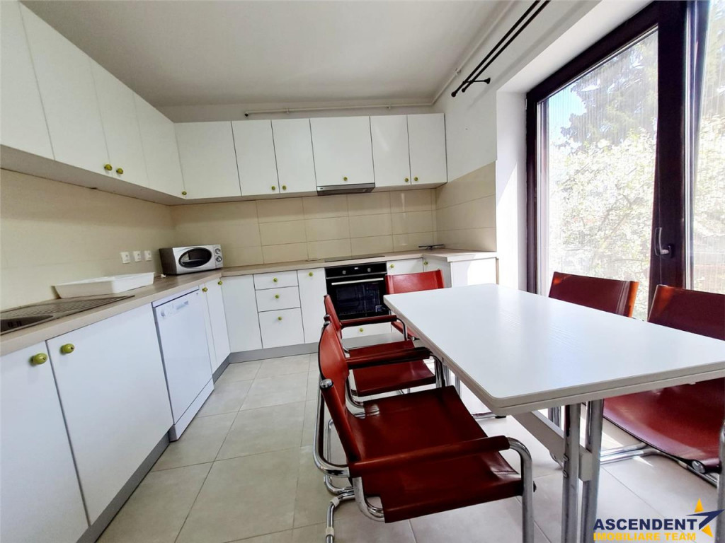 Comision chirias: 50% TVA, din contravaloarea unei chirii lunare. ASCENDENT IMOBILIARE Este onorata sa va propuna spre inchiriere o casa eleganta, complet utilata si mobilata, situata in zona centrala a orasului intr-un cartier linistt de case. Proprietatea este amenajata in stil vintage, este primitoare si luminoasa, dar si cu note moderne pe alocuri. Pe langa suprafata de 130 de metri utili, rezidenta dispune de o curte ampla care permite parcarea a 4 masini, balcon si terasa deschisa, oferind un spatiu care poate fi organizat atat pentru relaxare, cat si pentru o masa in familie sau alaturi de invitati. Configuratia casei: Parter inalt: hol mare la intrare living generos cu iesire pe terasa de 12 mp bucatarie cu spatiu amenajat ptr depozitare baie moderna cu cabina de dus Etaj: dormitor matrimonial dormitor secundar/copii baie moderna cu cabina de dus Mansarda: spatiu mare si luminos amenajat pentru relaxare/lectura/home working Nu in ultimul rand, rezidenta este unica datorita spatiului luminos de relaxare sau de home working amenajat la mansarda. Va doresc o zi cu soare in suflet! Consilier specializat pe oferta: doamna Gilda Georgescu Telefon/WhatsApp: 0722 807 623 Detalii, fotografii suplimentare si alte variante similare exclusive: www.ascendentimobiliare.ro