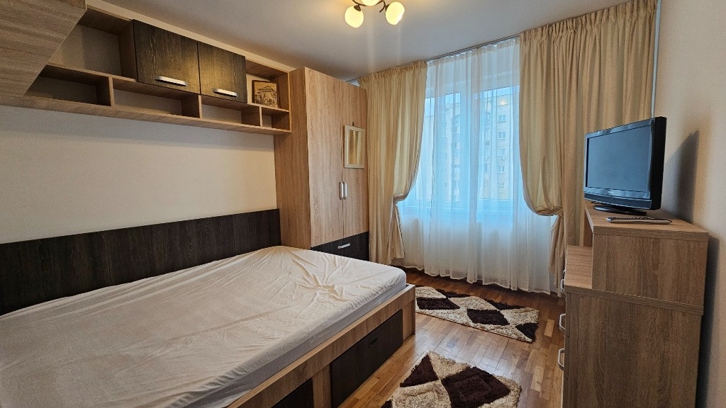 De inchiriat apartament cu 2 camere, zona Piata Sudului La 5 minute de Sun Plaza si de metrou Piata Sudului, localizat pe soseaua Oltenitei, in fata statiei de tramvai. La 3 minute de Lidl & Profi Etaj 6, bloc anvelopat, cu lift nou Aer conditionat in ambele camere Complet mobilat, si utilat cu electrocasnicele necesare Incalzire pe bloc Fara animale de companie