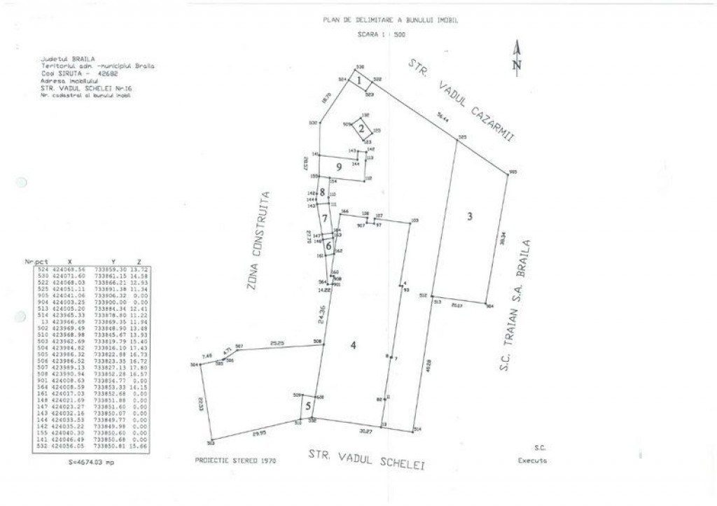Strada Vadul Schelei, nr. 16 Suprafata hala 120 mp Suprafata total teren - 4.673 mp Suprafata total construita - 2.706 mp