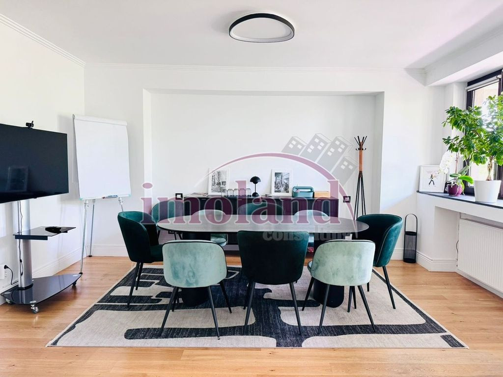 Avem placerea sa va prezentam un spatiu de birou cu un design minimalist pe bulevardul Aviatorilor. Apartamentul cu o suprafata utila de 143mp este situat la etajul 3/4 al unui imobil construit in 2007. living, bucatarie, dining. Proprietatea dispune de 3 birouri spatioase, 2 bai si spatii de depozitare, o terasa cu priveliste frumoasa asupra Bulevardului Aviatorilor. O locatie perfecta care ofera proximitate fata de tot ce v-ati putea dori in cea mai vibranta zona din Bucuresti. Se inchiraza cu un loc de parcare in garajul subteran. In imobil functioneaza doar firme.