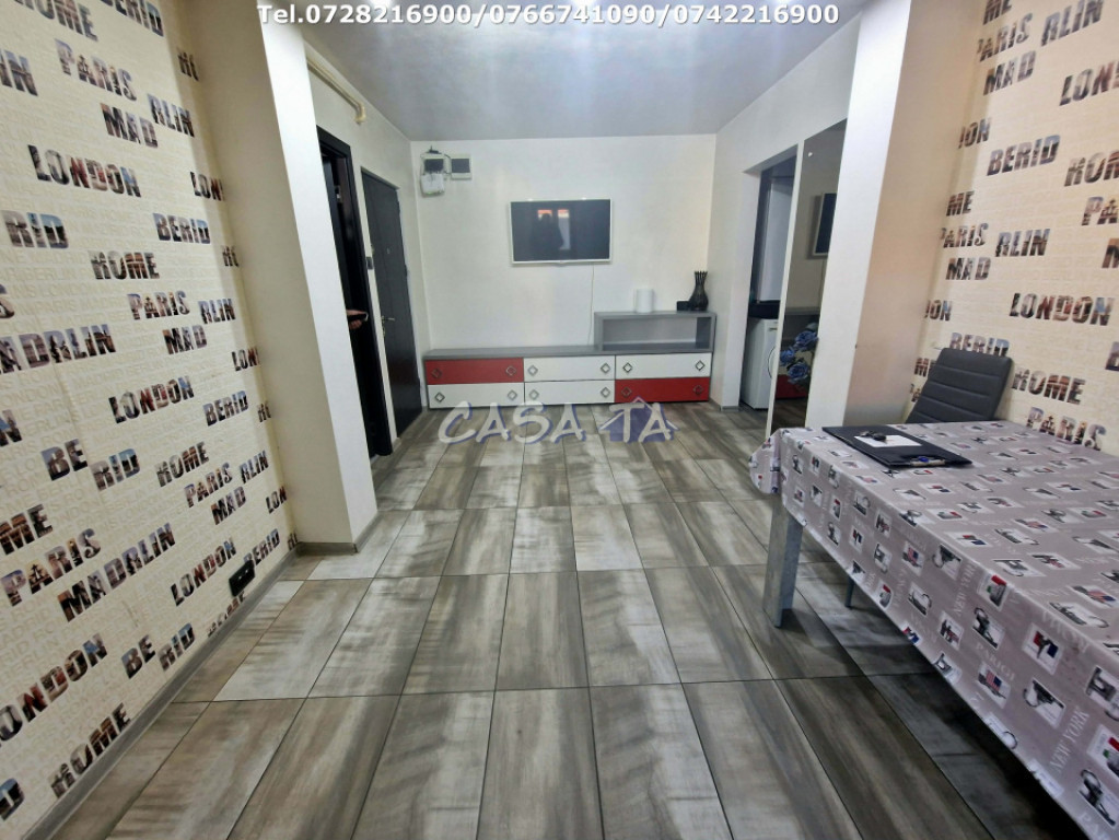 **Apartament cu 2 camere de închiriat în Târgu Jiu - Bld Ecaterina Teodoroiu** Agentia imobiliara CASA TA oferă spre închiriere un apartament cu 2 camere decomandat, cu o suprafață de 55 mp, situat la etajul 1 al unui imobil cu 4 etaje. Acest apartament cu 2 camere este ideal pentru cei care caută confort și accesibilitate. Proprietatea a fost recent renovată și dispune de un balcon închis cu geamuri termopan, oferind un spațiu suplimentar pentru relaxare. Este complet mobilat și dotat cu electrocasnice moderne, inclusiv frigider, aragaz, mașină de spălat și televizor. Iar centrala termică asigură o încălzire eficientă. Apartamentul beneficiază de utilități complete: apă curentă, gaze, curent electric, canalizare, precum și acces la internet și televiziune prin cablu.Locația este excelentă, în apropiere de școli, grădinițe, parc, farmacii, centre comerciale, restaurante, sală de sport și transport public. Prețul este de 350 EURO pe lună, plus o lună garanție. Pentru mai multe detalii, contactați-l pe Alex la numerele 0728216900 sau 0742216900. Id intern: P1887