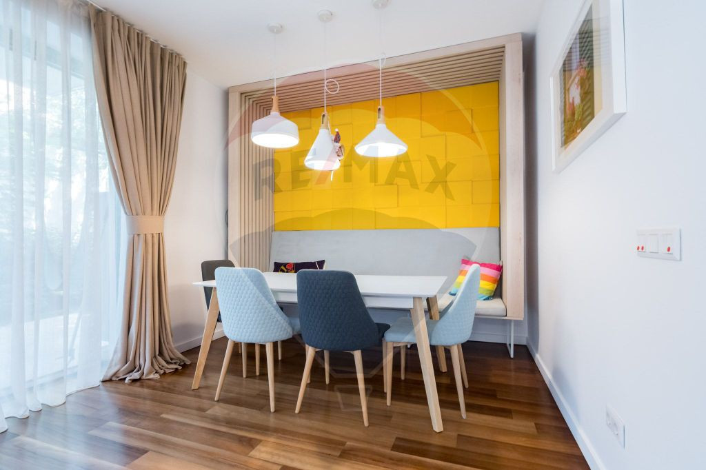 Disponibil acum pentru inchiriere, un apartament de 3 camere aflat in cartierul Domenii. Proprietatea se afla la parterul unui bloc boutique cu 3 etaje, finalizat in 2014. Suprafata utila este de 105 mp. Ai un living cu zona de dining, doua dormitoare, bucatarie cu camara, o baie cu cada, un WC de serviciu, o terasa de 50 mp si o gradina de 90 mp impartita intre zona cu vegetatie matura si zona cu gazon. Apartamentul este mobilat complet cu piese moderne. In living ai un TV Samsung de 65 inch. Incalzirea este in pardoseala cu senzori dedicati pe fiecare camera, centrala de imobil cu repartitoare si aer conditionat in fiecare incapere. Ai masina de spalat rufe cu uscator, masina de spalat vase, sistem de alarma pregatit pentru conectare la RPG Security, doua camere video in gradina cu DVR, videointerfon si sistem automat de irigatii. Finisajele si mobilierul au fost realizate sub coordonarea unui arhitect. Atmosfera este placuta si echilibrata. Proprietatea include doua locuri de parcare in subteran. Zona este una cautata, cu multe case si spatii verzi. Ai acces rapid la Arcul de Triumf, Manastirea Casin, Parcul Herastrau, Piata Domenii si Stadionul Triumf. Pentru detalii si vizionari, suna cu incredere.