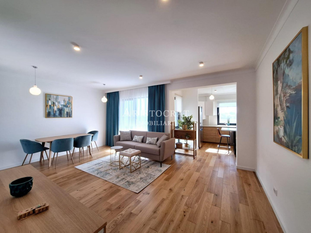 Aristocrat Imobiliare va propune spre inchiriere un apartament modern, complet mobilat si utilat, compus din 3 camere( 2 dormitoare) , 2 bai, etaj 1/ P 2, supr. utila 95mp, supr.construita 110mp. Apartamentul, amplasat intr-un complex rezidential bine manageriat si pozitionat in zona Corbeanca, este compartimentat astfel : - hol si baie de servici , living cu terasa generoasa, bucatarie open space dotata cu electrocasnice performante, masina de spalat vase, cuptor electric si plita, hota si spatiu de depozitare - aer conditionat in fiecare camera, spatiu spalatorie si spatii pentru depozitare, - in planul secund al proprietatii : hol, 2 dormitoare(unul din ele cu balcon), baie, spatii pentru depozitare. Accesul este facil catre toate punctele de interes, la cateva minute de centrul comercial Dn1 Value Center, DN1, Therme, Aeroport. Accesul securizat, camere video in ansamblul rezidential , loc de joaca pentru copii Constructia blocului 2023 Loc de parcare in fata imobilului. La inchiriere se percep contravaloarea unei chirii drept garantie si luna in curs. Nu sunt acceptate animale de companie Contactati-ne pentru stabilirea unei programari pentru vizionare