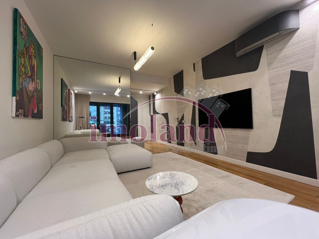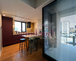 MADE TO SHINE a fost denumit acest apartament cu 3 camere din complexul Avalon Estate de catre studioul de arhitectura Jooca Studio, care a realizat acest proiect inedit. Daca esti interesat de un apartament ultramodern amenajat pana la cel mai mic detaliu, cred ca acest loc iti va capta atentia. Printre elementele care iti vor incanta privirea si iti vor face viata confortabila se regasesc urmatoarele: LIVING - amenajat minimalist cu canapea de 3 m foarte confortabila si puf marca Mille - masute decorative - tapet decorativ in living si bcucatarie - tablouri cu semnatura unui artist plastic roman - usi Filomuro - TV Samsung de ultima generatie atasat pe perete BUCATARIE - deschisa cu acces din living si amenajata cu insula si corpuri suspendate - intr-o asociere de culori puternice de auriu si bordeaux linistite de alte nuante ale tapetului si culori off-white, cu elemente decorative negre - utilata complet marca BOSCH (masina spalat rufe, masina spalat vase, frigider, plita, cuptor) - hota decorativa cu prindere in tavan - blat din piatra HOL - holul de acces in apartament a fost delimitat de zona de living printr-un corp de mobilier placat integral cu oglinda unde se regaseste un pantofar generos - mobilier suplimentar pentru depozitare cu forme neregulate - taburet marca Mille in set cu piesele din living DORMITOR - amenajat cu pat de mijloc si dressing cu usi glisante - acces la baie cu cada DORMITOR SECUNDAR - amenajat cu dressing in L si canapea extensibila - poate fi ideal pentru oaspeti sau ca dormitor de copil BAIE OASPETI - vopsitorie in culori bordeaux - amenajata cu dus walk-in BALCON - de tip logie cu acces din living cu vedere catre Club Avalon. Apartamentul este iluminat integral led de la The Edith, printre corpurile de iluminat se regasesc linii cu spoturi, corpuri marca Aromas del Campo si Gubi. Este situat in cel mai frumos ansamblu rezidential construit in Pipera - Avalon Estate, gandit ca o comunitate exclusivista. Localizarea imobilului este la doar 3 minute de condus de Pipera Plaza, 10 de Promenada Mall, 10-15 de scolile si gradinitele private din zona Pipera-Iancu Nicolae (American, British, Mark Twain, Olga Gudynn, etc.). Avalon Estate este localizat pe malul Lacului Pipera, avand multiple facilitati, printre care: parc privat, spatii verzi si de agrement, zona de recreere si de promenada pe malul lacului, loc de joaca pentru copii, restaurant si bar, piscina exterioara cu filtrare prin plante, sala de fitness, paza permanenta, supraveghere video si control acces.