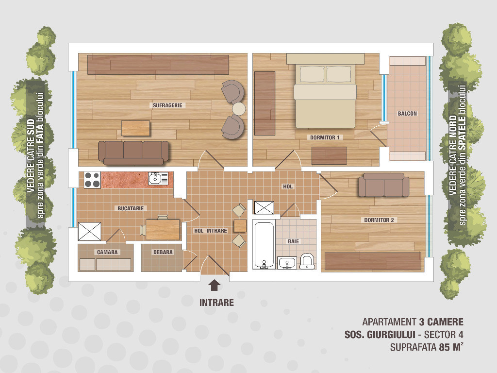 3 camere | 85 m² | Bucuresti-Ilfov / Bucuresti