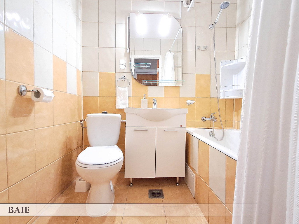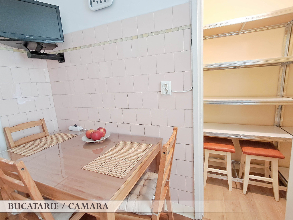 Apartamentul se inchiriaza mobilat si utilat, avand bucataria mobilata la comanda din MDF, echipata cu cuptor si aragaz, hota, combina frigorifica, masina automata de spalat rufe, chiuveta din compozit si baterie Alveus.