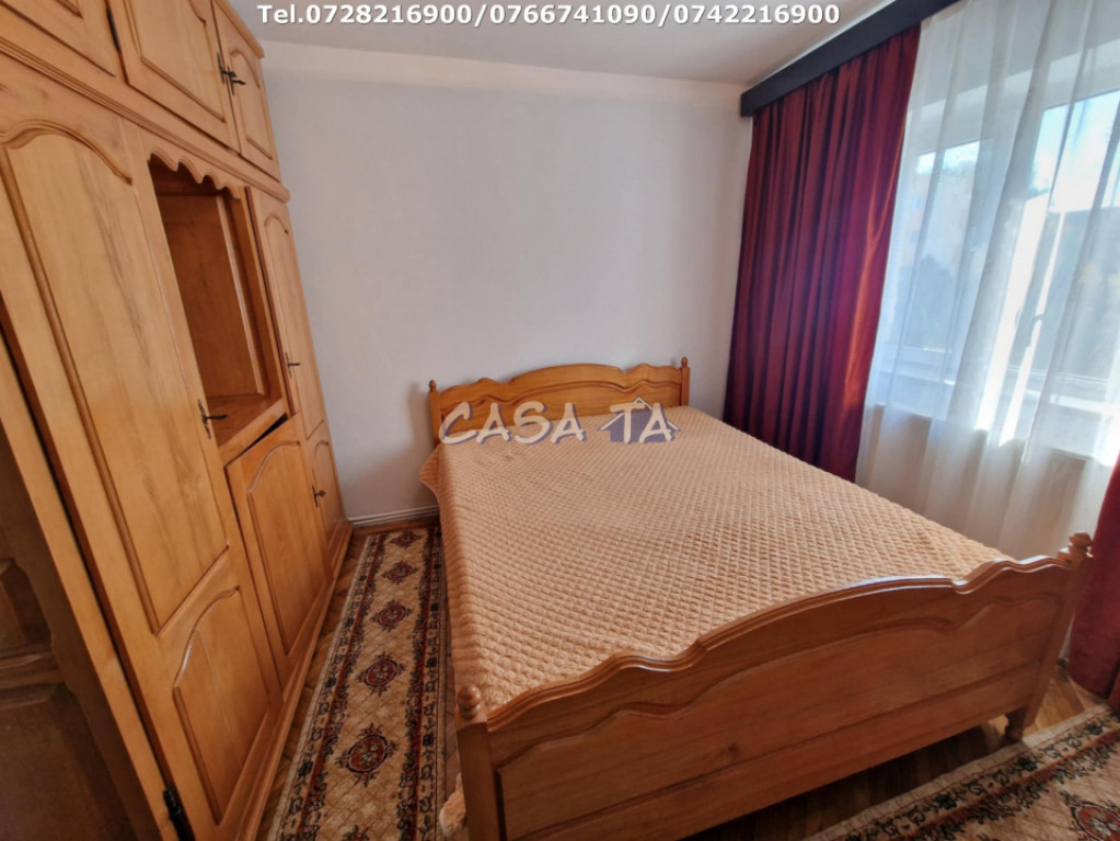 Agentia Imobiliara CASA TA ofera spre Inchiriere APARTAMENT 3 camere (70 mp), decomandat, situat pe Strada Victoriei, etaj 2/4. Apartamentul este compus din: 3 camere, 2 bai, bucatarie, hol, balcon, spatiu depozitare. Dotari: Frigider, aragaz, masina de spalat, Complet mobilat si utilat. Finisaje: Gresie, faianta, parchet, glet/lavabila, geamuri termopan, usi interior(panel) Utilitati: Apa curenta, gaze, curent electric, canalizare, incalzire-Centrala termica, Apometre, CATV, Internet. Imobilul este construit din caramida, detinand de altfel si loc de parcare. Pret: 340 Euro/Luna + 340 Euro garantie. Telefon: 0728216900; 0742216900; 0253216900 ; 0766741090. Id intern: P1811