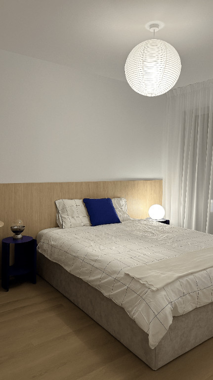 NU COLABOREZ CU AGENTII! Apartamentul este situat în sectorul 3, zona Fizicienilor. Are două camere, cu balcon generos, orientare sud-est, fiind situat la etajul 3 al unui imobil nou, finalizat în 2025, retras de la stradă. Apartamentul este la prima închiriere. Compartimentarea este modernă și eficientă, apartamentul dispune de încălzire în pardoseală, iar mobilierul este premium, de design, realizat pe comandă. Baia este complet echipată cu cadă, obiecte sanitare încastrate și port-prosop. Apartamentul este complet mobilat și utilat cu pat matrimonial 160x200 cm cu saltea de spuma, canapea și masă extensibile, birou cu scaun, mobilier de balcon și spații de depozitare bine integrate. Electrocasnicele sunt noi și cu consum redus de energie: hotă complet încastrată, plită și cuptor Electrolux, MSR cu uscător și frigider încastrat Samsung, MSV Bosch, aer condiționat multisplit (2 ui x 9000 BTU), TV LED smart LG, iluminat smart Philips Hue conectat la Bridge, aspirator, cuptor cu microunde, purificator de aer, blender și aparat de cafea. Apartamentul se află într-o zonă bine conectată, cu stație de autobuz chiar în fața blocului, iar metroul se află la aproximativ 13 minute de mers pe jos sau 4 minute cu autobuzul. În imediata apropiere se găsesc numeroase magazine, servicii de proximitate, sală de sport și Parcul IOR la 11 minute de mers pe jos. Apartamentul se închiriază doar împreună cu locul de parcare, situat la demisol, complet acoperit și generos ca spațiu. Caut chiriaș/chiriașă sau cuplu tânăr, cu job stabil, foarte serioși, care apreciază liniștea și ordinea. Nu accept studenți, fumători sau persoane gălăgioase. Condiții de închiriere: chirie 775 EUR/lună + garanție 775 EUR (sistem 1+1). Contract înregistrat la ANAF, plata exclusiv online. Apartamentul este disponibil începând cu ianuarie 2026 și se poate viziona imediat.