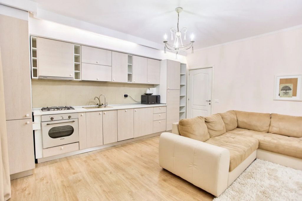 Living open-space cu bucătărie echipată, dormitor spațios, centrală proprie, 2 aparate A/C, baie cu geam, balcon multifunctional.