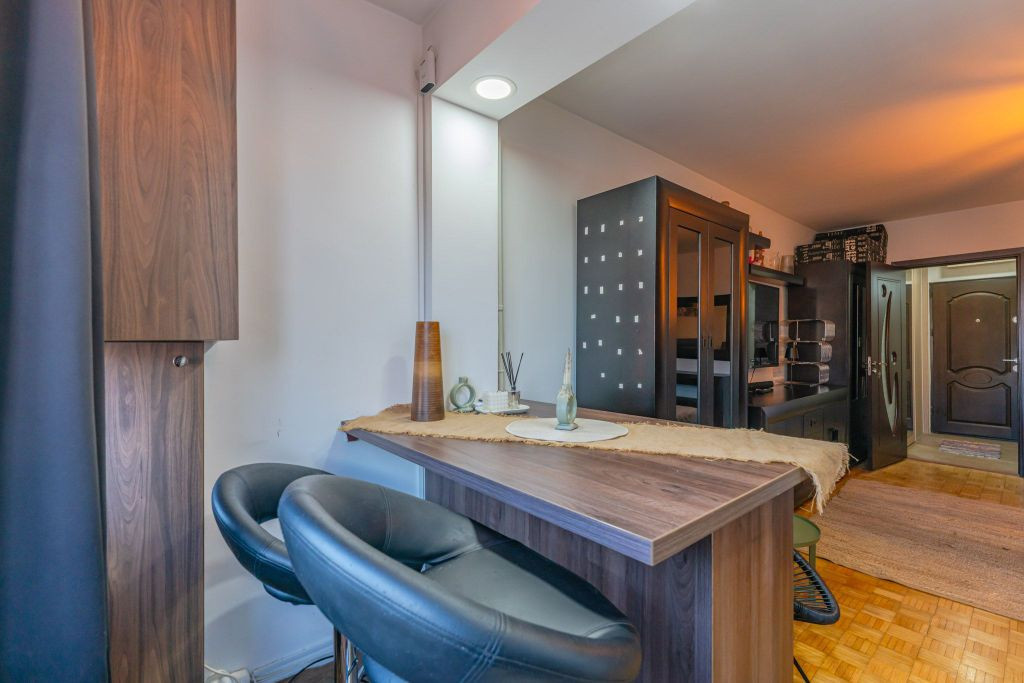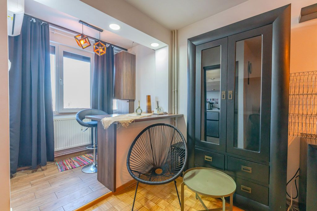 Vă propunem spre închiriere o garsonieră situată în cartierul Astra din Brașov, având o suprafață utilă de 28 mp. Compartimentarea este de tip semidecomandat și cuprinde: cameră, bucătărie, baie și hol de acces. Balconul a fost închis și integrat în suprafața utilă, soluție ce extinde volumul interior al camerei principale. Din punct de vedere al dotărilor tehnice, imobilul dispune de centrală termică proprie pe gaz și sistem de aer condiționat. Ferestrele sunt echipate cu jaluzele exterioare, care asigură controlul luminozității și contribuie la izolarea termică și fonică a spațiului. Locuința se închiriază mobilată și utilată, conform fotografiilor de prezentare. Dotările tehnice includ: plită și cuptor electric, hotă, frigider, mașină de spălat rufe și televizor. Toate echipamentele sunt în stare de funcționare, spațiul fiind pregătit pentru utilizare. Proprietarul este persoană fizică. Condițiile de închiriere prevăd plata chiriei în avans pentru prima lună și constituirea unei garanții. Comisionul de intermediere este de 50% din valoarea chiriei pentru prima lună.