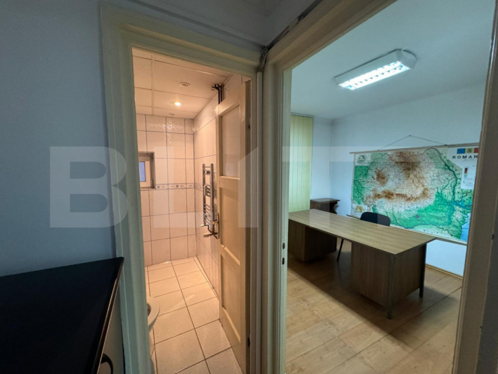 Blitz va oferă spre închiriere un apartament cu 2 camere, semidecomandat, situat la etajul 1 al unui bloc cu 4 etaje, în zona ultracentrală Maestro. Imobilul are o suprafață de 39 mp și este trecut în acte ca spațiu comercial, fiind amenajat și folosit anterior ca birouri. Este ideal pentru activități de tip: firmă de servicii, cabinet, birou de consultanță, sediu firmă, etc. Caracteristici: 2 camere semidecomandate Suprafață: 39 mp Etaj 1/4 Zonă ultracentrală – Maestro Amenajat pentru birouri Acces facil, vizibilitate bună Potrivit atât pentru activități comerciale, cât și pentru birouri, într-o zonă cu trafic pietonal și acces rapid către principalele puncte de interes ale orașului. Cod ofertă / ID BLITZ: P165616 Id intern: P165616