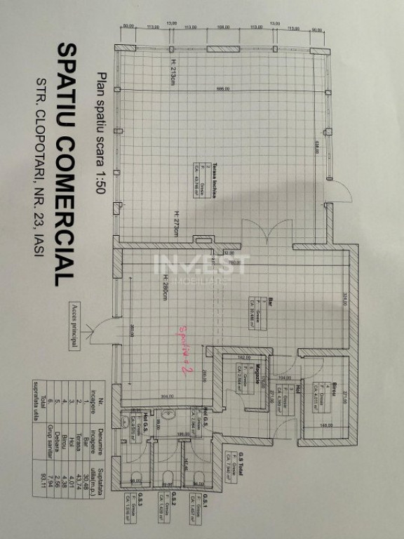 Invest Imobiliare vă propune spre închiriere un spațiu comercial de 80 MP utili situat în cartierul Nicolina din Iași. Spațiul se află la parterul unui imobil, beneficiind de: - toate utilitățile (apă, gaz, canalizare, curent); - 2 aparate de aer condiționat; - sistem complet și funcțional de supraveghere video; - grup sanitar; * Dispune de un număr generos de gemuri pre-montate, dar acoperite cu rigips (se pot demasca). Imobilul dispune de mai multe suprafețe și variante de compartimentări pentru spații comerciale, prețurile variind. Pentru mai multe detalii, nu ezitați să ne contactați la numărul: 0752 489 020- Alexandru. Id intern: P7395