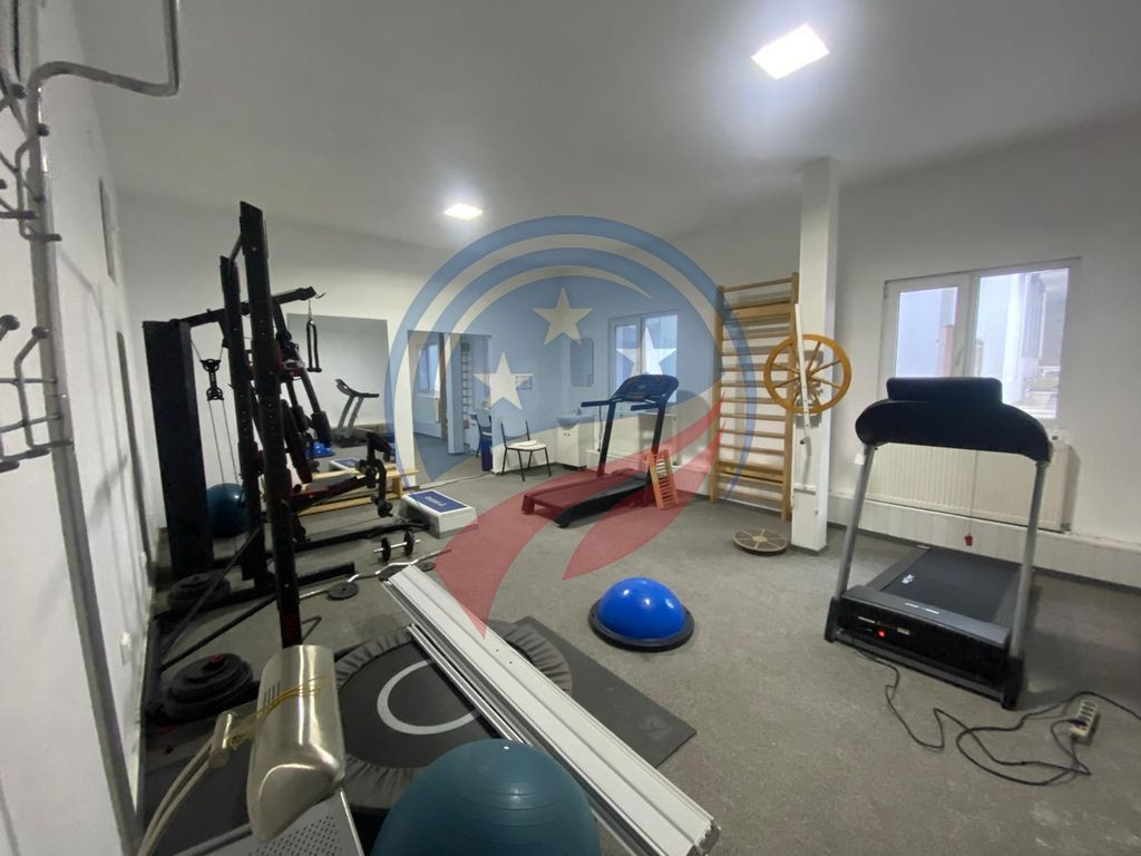 Spatiul poate fi adaptat in functie de activitate , in prezent fiind utilat cu diverse aparate medicale si mobilier .