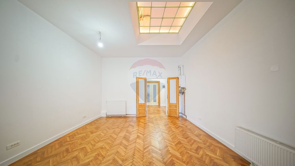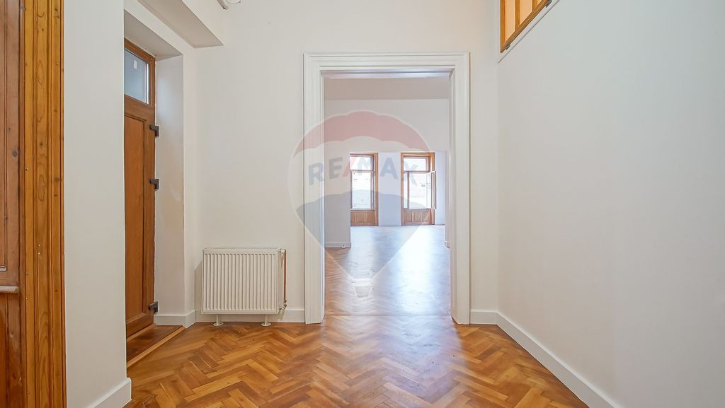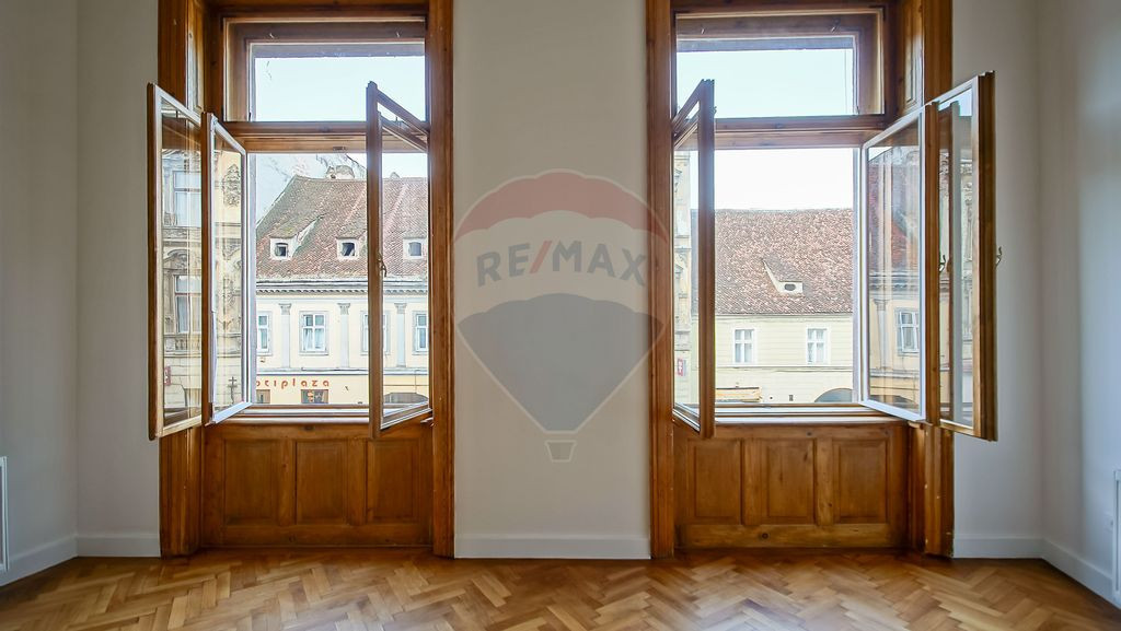 Se oferă spre închiriere un spatiu compus din 2 camere + dependinte, situat la etajul 1 al unei clădiri istorice din centrul orașului, pe strada Mureșenilor nr. 18 – una dintre cele mai reprezentative zone, cu acces facil către instituții, puncte de interes și mijloace de transport. Comision 0 pentru chiriaș. Proprietatea a trecut recent printr-un proces complet de renovare, păstrând totodată elementele arhitecturale originale care îi oferă un caracter distinct: Înălțime interioară de aproximativ 4 m, conferind o atmosferă luminoasă și spațioasă. Un tavan cu luminator în prima cameră. Pictură originală pe tavanul celei de-a doua camere, conservată și integrată în noul design. Instalații sanitare înlocuite, centrală termică pe gaz nouă, pereți renovați, parchet și tâmplărie din lemn restaurate. Apartamentul este nemobilat, oferind flexibilitate pentru amenajarea unui birou în funcție de specificul activității. Spațiul dispune de grup sanitar individual, renovat de asemenea integral. Datorită poziției, aspectului reprezentativ și finisajelor moderne, imobilul este potrivit pentru activități de birou (persoane fizice sau juridice) care apreciază un mediu profesional într-o clădire cu valoare istorică. Reprezentarea este asigurată de agenția anului 2024 în rețeaua Remax România – Remax Evolution Brașov, cu focus pe servicii premium și consultanță dedicată. Se dorește un contract pe termen lung, cu disponibilitate imediată, iar toate condițiile contractuale sunt flexibile și vor fi discutate în detaliu înainte de încheierea contractului propriu-zis. Ca si conditii financiare de inchiriere se percep 2 luni garantie + luna in curs.