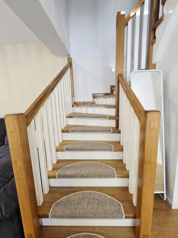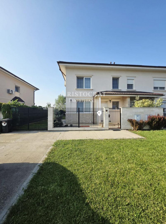 Aristocrat Imobiliare va propune spre inchiriere o casă de vis într-un ansamblu rezidențial modern Design și compartimentare: - Parter: hol de intrare, 1 spatiu generoas de depozitare (incluzând mașină de spălat rufe Bosch), 1 baie , living spațios cu semineu ideal pentru relaxare, bucătărie complet mobilata si utilată cu plită inductie, hotă, mașină de spălat vase, cuptor electric și frigider. - Etaj: hol de distribuție, dormitor matrimonial cu baie proprie și dressing pentru confort maxim, al doilea dormitor si un birou (poate fi convertit în cameră pentru copil), baie cu cadă pentru momente de relaxare. - Pod: acces cu trap pentru depozitare suplimentară, ideal pentru depozitare Dotări și facilități: - Sisteme moderne: stație dedurizare apă, centrală termică Buderus pentru eficiență, semineu electric pentru atmosferă cozy, trei aparate de aer condiționat Mitsubishi, sistem Wi-Fi performant și televiziune. - Securitate și confort: sistem de alarmă antiefracție, terasă amenajată și închisă cu folie transparentă PVC, curte cu gazon, brazi și grătar pentru petreceri în aer liber. - Alte facilități: loc de joacă pentru copii în incinta ansamblului, acces securizat cu pază 24/7, rețea de apă și canalizare, străzi asfaltate. Localizare excelentă: - La câteva sute de metri de stație de transport în comun, magazine, supermarket-uri, farmacii, grădinițe private și școli. - Aproape de pădure, perfect pentru plimbări și activități în natură. Detalii tehnice: - Proprietate construită în 2017, în stil duplex din cărămidă, cu o suprafață totală de 150 mp și suprafață utilă de 114 mp. - Teren de 250 mp, cu deschidere de 14 metri la șosea asfaltată. - Casa este complet mobilată și utilată, gata pentru a fi locuită sau închiriată. - Acoperiș din tablă Lindab, aer condiționat, centrală termică, sistem de alarmă, toate integrate pentru confort și siguranță. Această locuință reprezintă combinația perfectă între confortul modern și infrastructura completă, fiind ideală pentru familii sau persoane care apreciază un stil de viață activ și sigur. Contactați-ne pentru mai multe detalii și pentru a programa o vizionare!