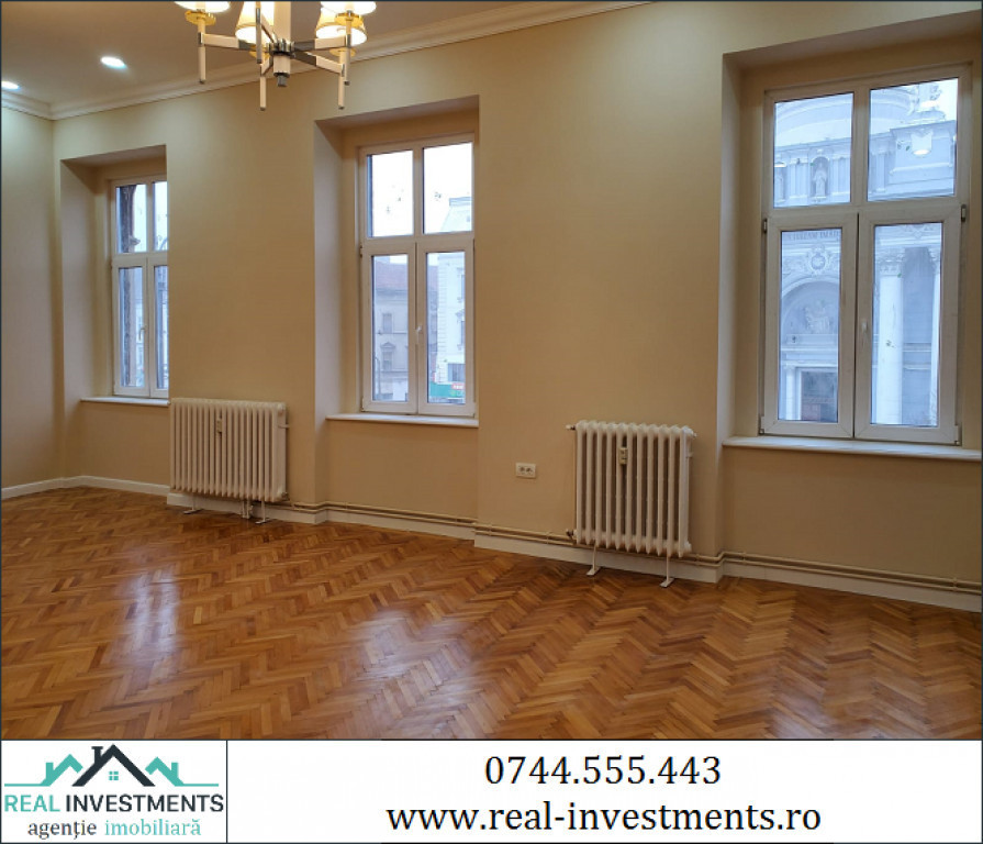 Inchiriez apartament zona Ultracentrala-Bld. Revolutiei, vis-a-vis de catedrala, 1 camera, baie, bucatarie, hol, apartament recent renovat, nemobilat, incalzire CET, apartament in suprafata de 60 mp, etaj 2, recomandat ca spatiu pentru birouri sau sediu de firma. Pret : 350 euro ID : RH-23149-property