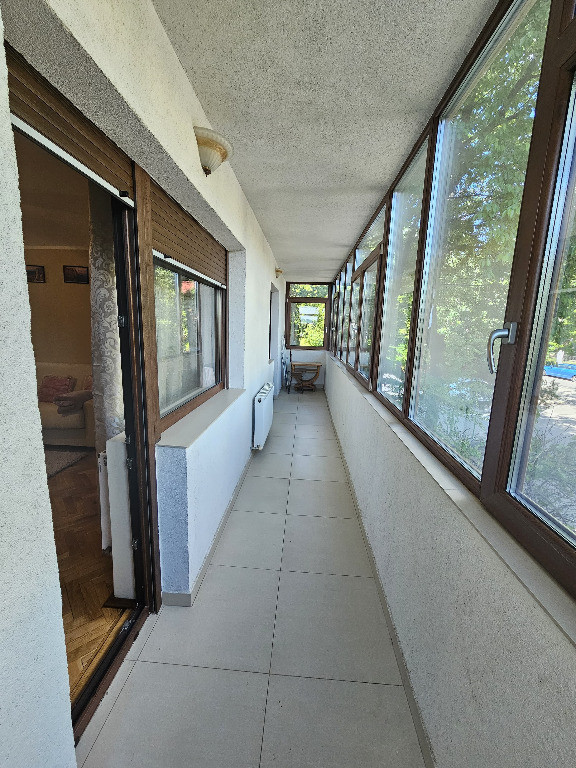 Living spațios, mobilat elegant, cu ieșire spre un balcon foarte mare, închis cu termopan