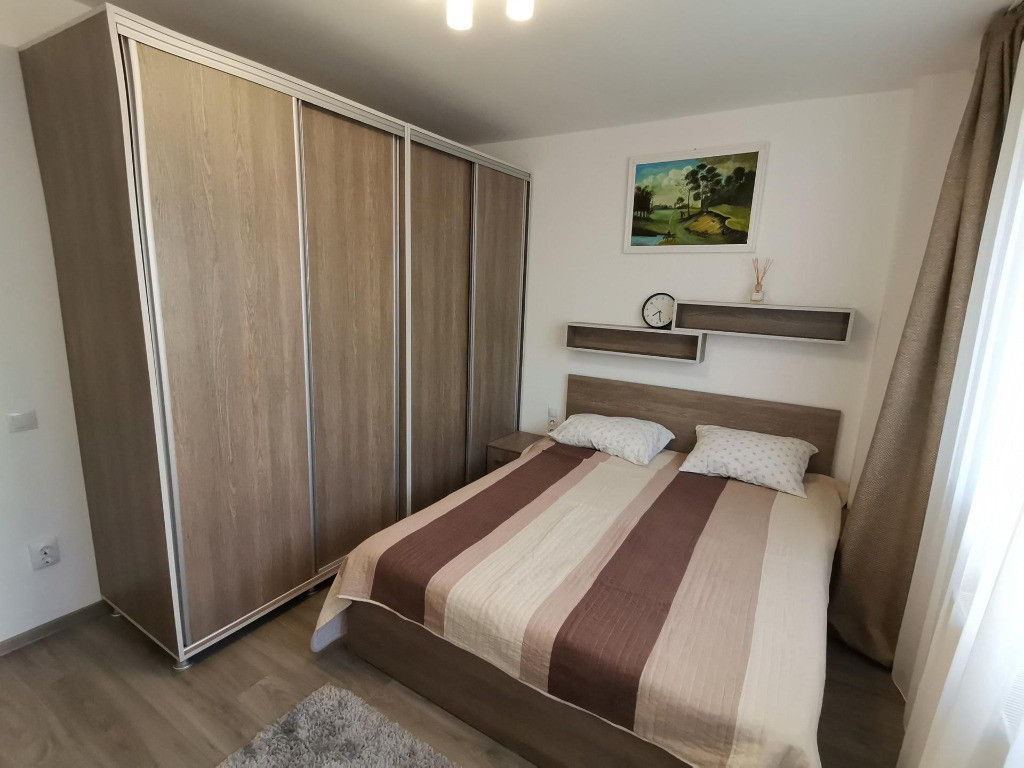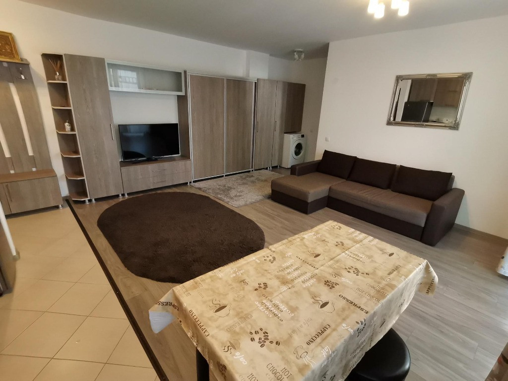 INCHIRIEZ APARTAMENT 2 camere constructie noua, situat la etajul 3 al unui imobil P+7,cu lift, in zona Kaufland,(Selimbar) cu o suprafata utila de aproximativ 54 mp.Apartamentul se inchiriaza mobilat si utilat.Compartimentarea este dispusa astfel: 1 living open space cu bucataria,1 dormitor, baie, hol. Imbunatatiri: gresie, faianta, usi interioare lemn, use la intrare metal, geamuri termopan cu tamplarie PVC, CT proprie, cablu TV ,parcare privata.Pret 380 Euro + garantie . Informatii:0751775754