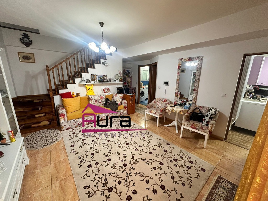 Agentia Imobiliara Aura Intermediar inchiriaza apartament 3 camere situat la etajul 1 al unuii imobil cu 2 nivele zona Big,suprafata totala 70 mp,centrala gaz,mobilat utilat complet,imobilul este compus din living,2 dormitoare,bucatarie,hol,baie si terasa deschisa.Chiriasul va beneficia de parcare auto situata in interiorul curtii unde se afla un foisor plus barbeque pentru momente de relaxare,pret 500 euro plus o luna garantie,tel.0747698898