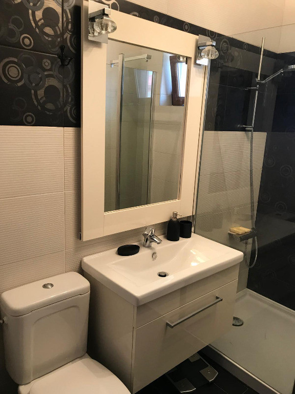 - baie (5 mp) utilata cu cabina de dus, chiuveta, WC, gresie